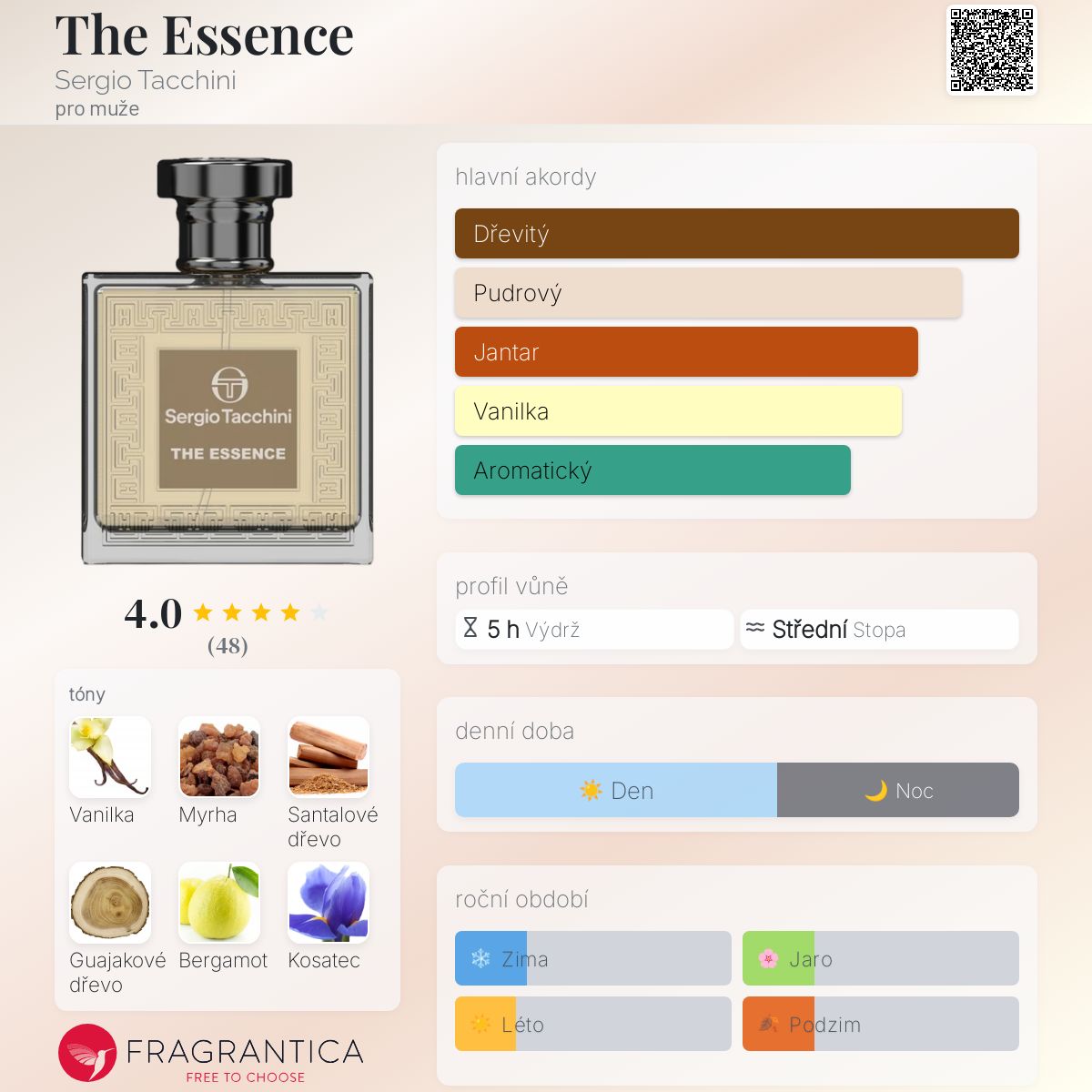 The Essence podle Sergio Tacchini je Woody Aromatic vůně pro muže. The Essence byl/a uveden/a v roce 2022. Vrchní tóny jsou Bergamot, Pelyněk, Pelyněk a Jalovec; střední tóny jsouMyrha, Kosatec a Kadidlo ; základní tóny jsou Vanilka, Santalové dřevo, Guajakové dřevo a Pižmo.