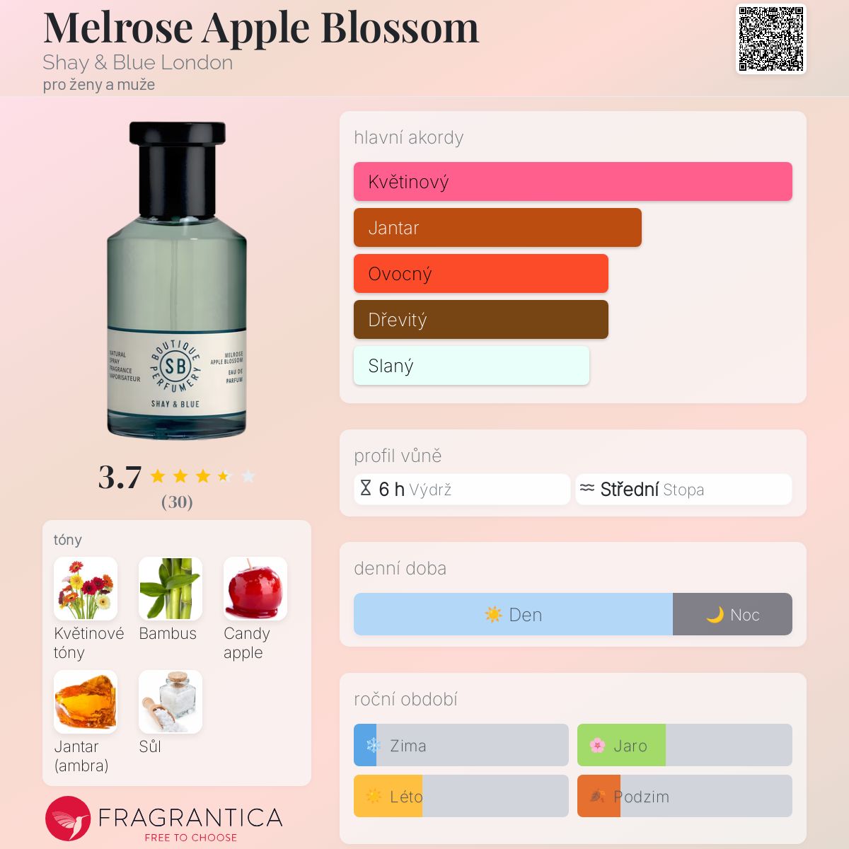 Melrose Apple Blossom podle Shay & Blue London je Orientální Floral vůně pro ženy a muže. Melrose Apple Blossom byl/a uveden/a v roce 2023. "Nosem" za touto vůní je Julie Massé. Vrchní tón je Květiny ; střední tóny jsouBambus, Sladké jablko a Sůl ; základní tón je Jantar (ambra).