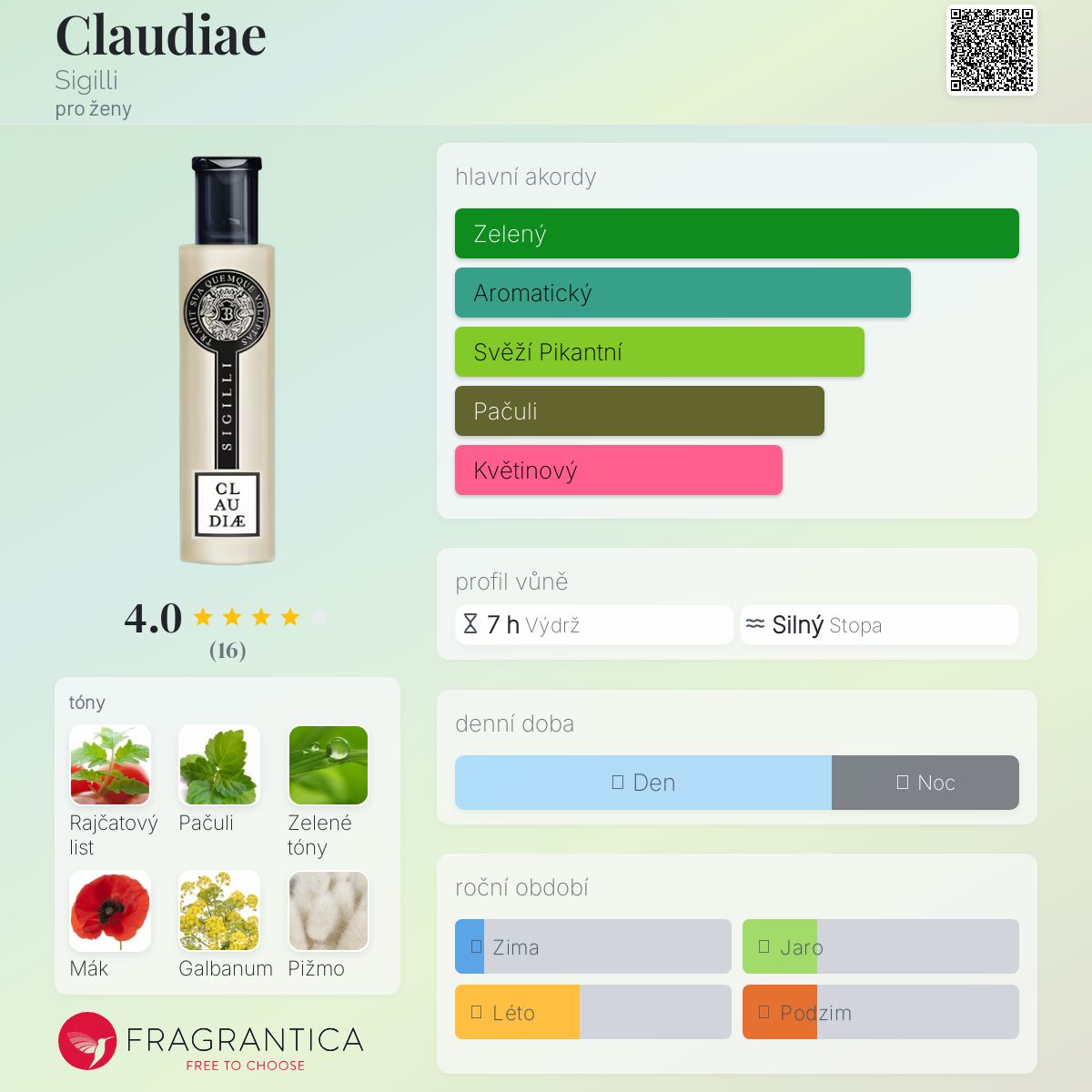 Claudiae podle Sigilli je Floral Green vůně pro ženy. Claudiae byla spuštěna během 2000. "Nosem" za touto vůní je Enrico Buccella. Vrchní tóny jsou Rajčatový list a Červený mák; střední tóny jsouZelené tóny, Galbanum a Růže ; základní tóny jsou Pačuli a Pižmo.
