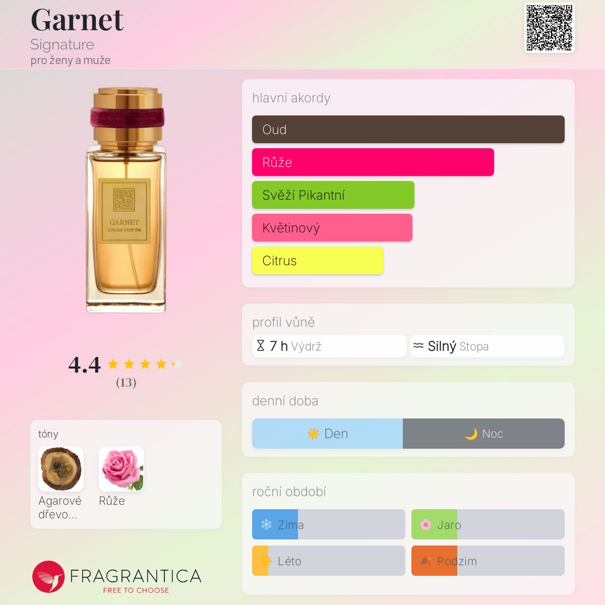 Garnet podle Signature je Woody Floral Musk vůně pro ženy a muže. Garnet byl/a uveden/a v roce 2016.