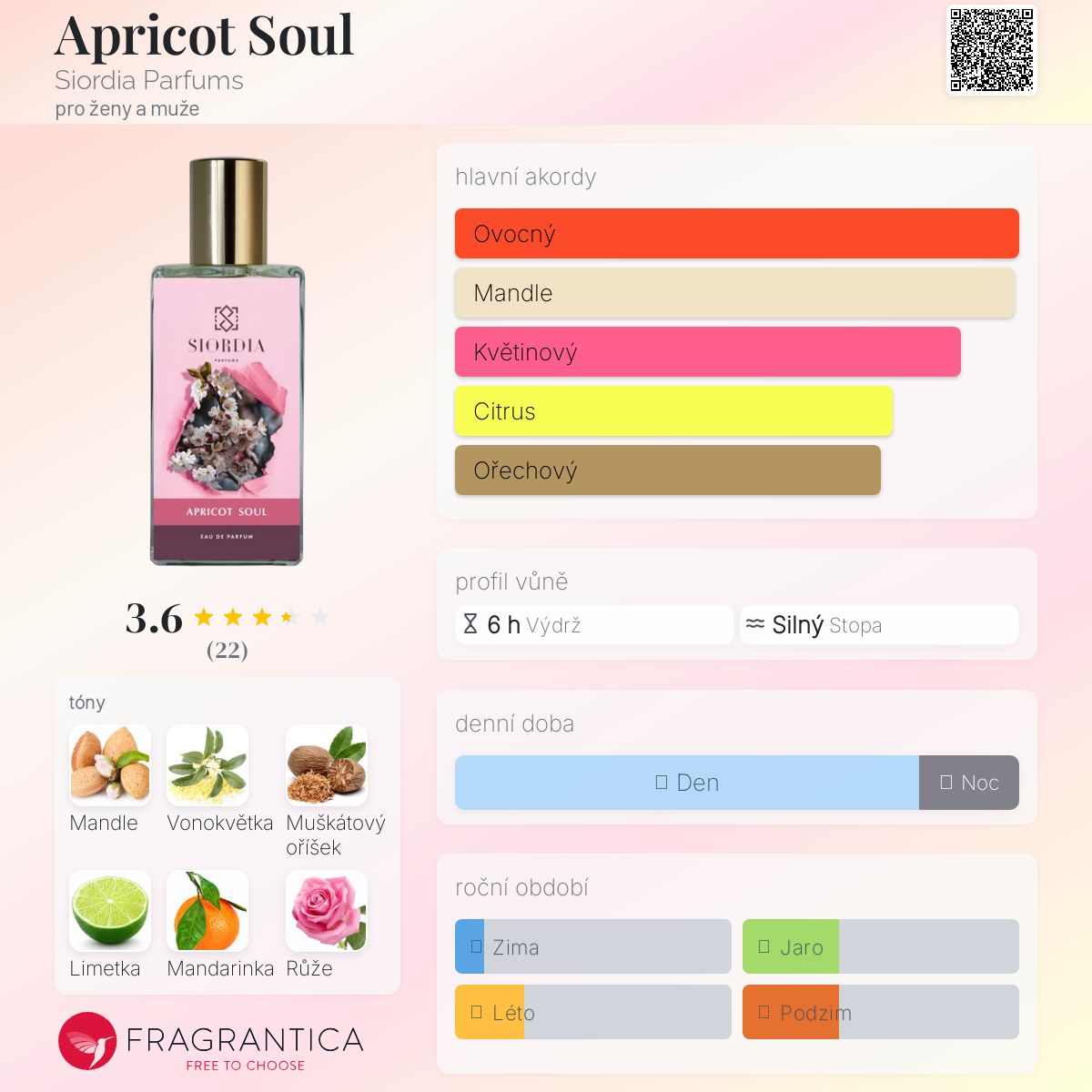 Apricot Soul podle Siordia Parfums je Floral Fruity vůně pro ženy a muže. Apricot Soul byl/a uveden/a v roce 2017. "Nosem" za touto vůní je Ekaterina Siordia.
