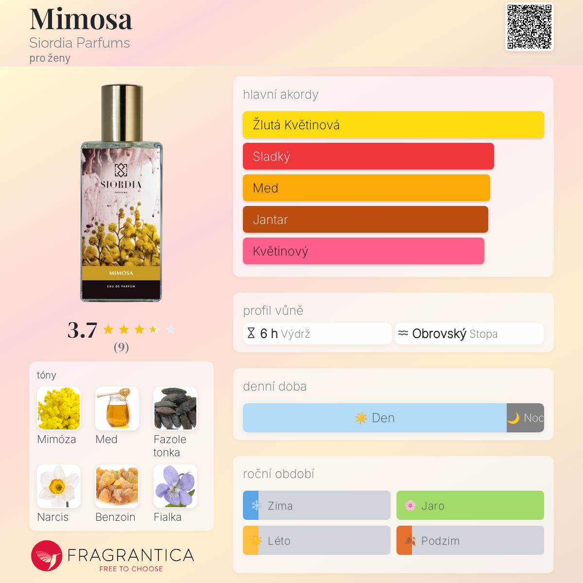Mimosa podle Siordia Parfums je Floral vůně pro ženy. Mimosa byl/a uveden/a v roce 2018. "Nosem" za touto vůní je Ekaterina Siordia.