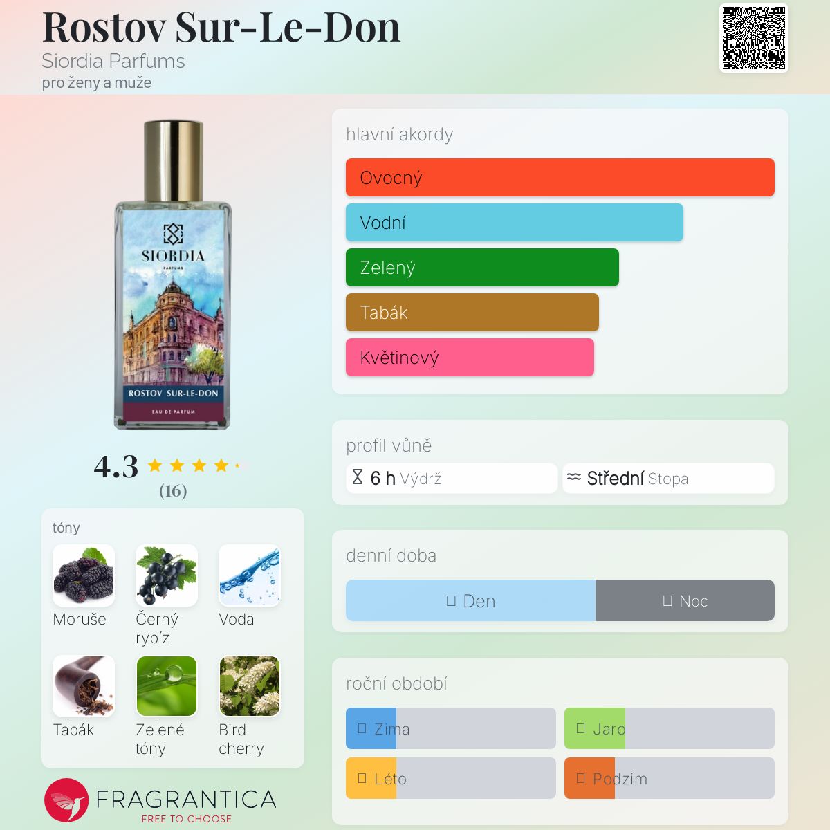 Rostov Sur-Le-Don podle Siordia Parfums je vůně pro ženy a muže. Toto je nová vůně. Rostov Sur-Le-Don byl/a uveden/a v roce 2024. "Nosem" za touto vůní je Ekaterina Siordia.