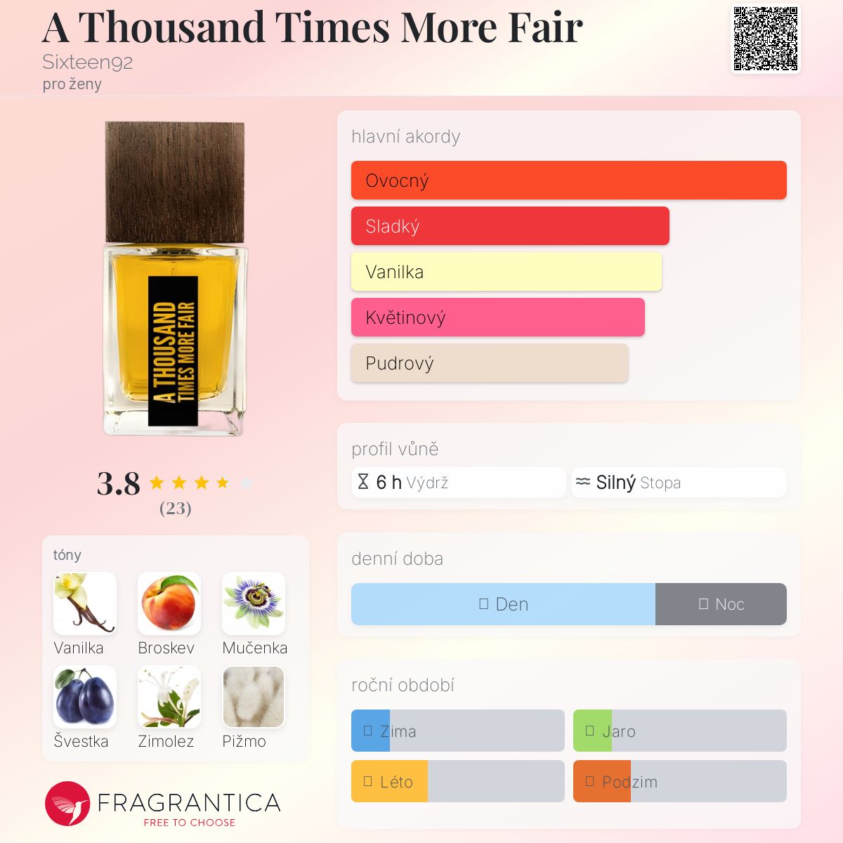 A Thousand Times More Fair podle Sixteen92 je Floral Fruity vůně pro ženy. A Thousand Times More Fair byl/a uveden/a v roce 2016. "Nosem" za touto vůní je Claire Baxter.