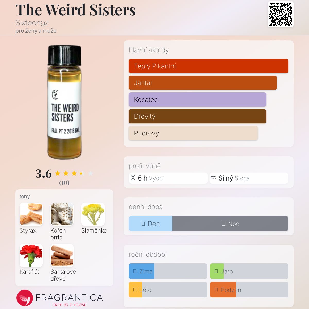 The Weird Sisters podle Sixteen92 je Woody Floral Musk vůně pro ženy a muže. The Weird Sisters byl/a uveden/a v roce 2018. "Nosem" za touto vůní je Claire Baxter.