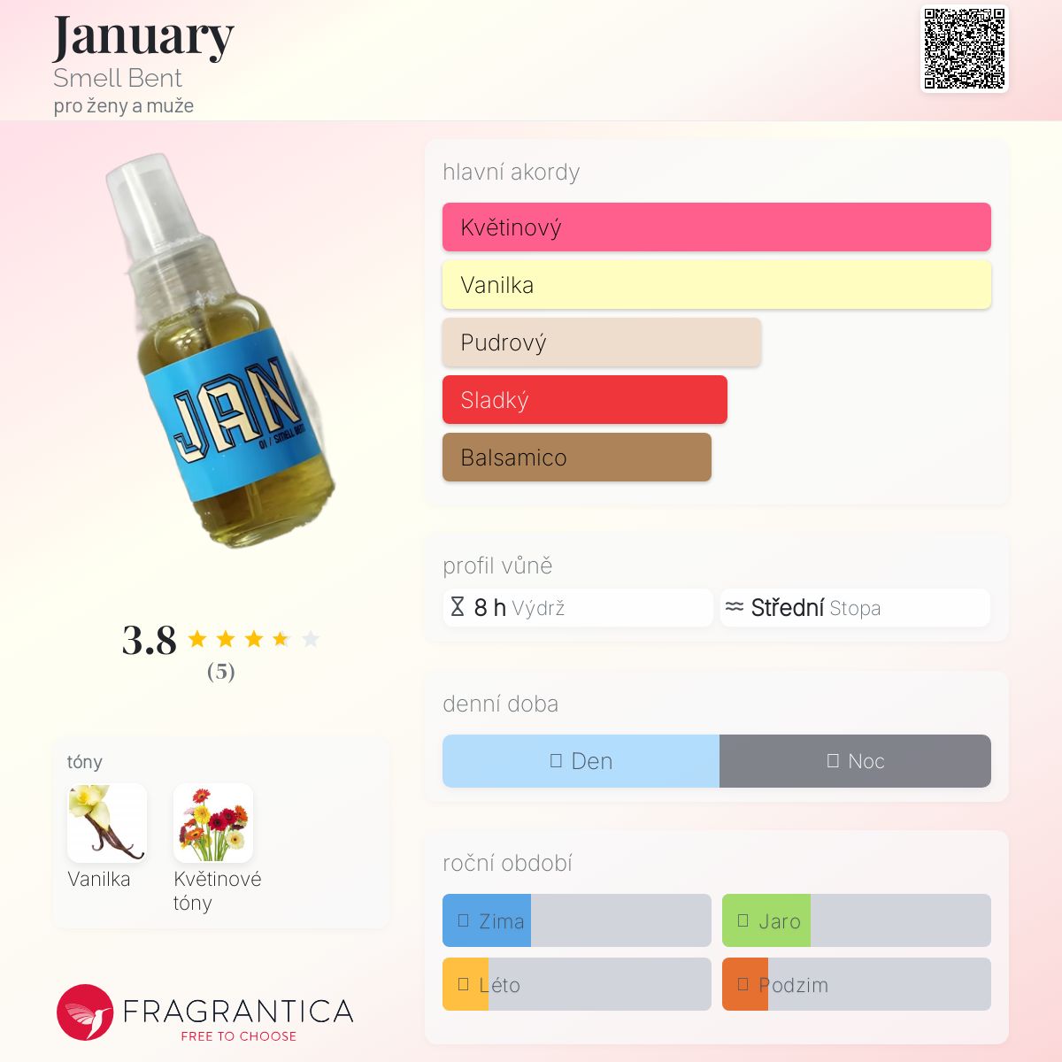 January podle Smell Bent je Orientální Floral vůně pro ženy a muže. January byl/a uveden/a v roce 2016. "Nosem" za touto vůní je Brent Leonesio.