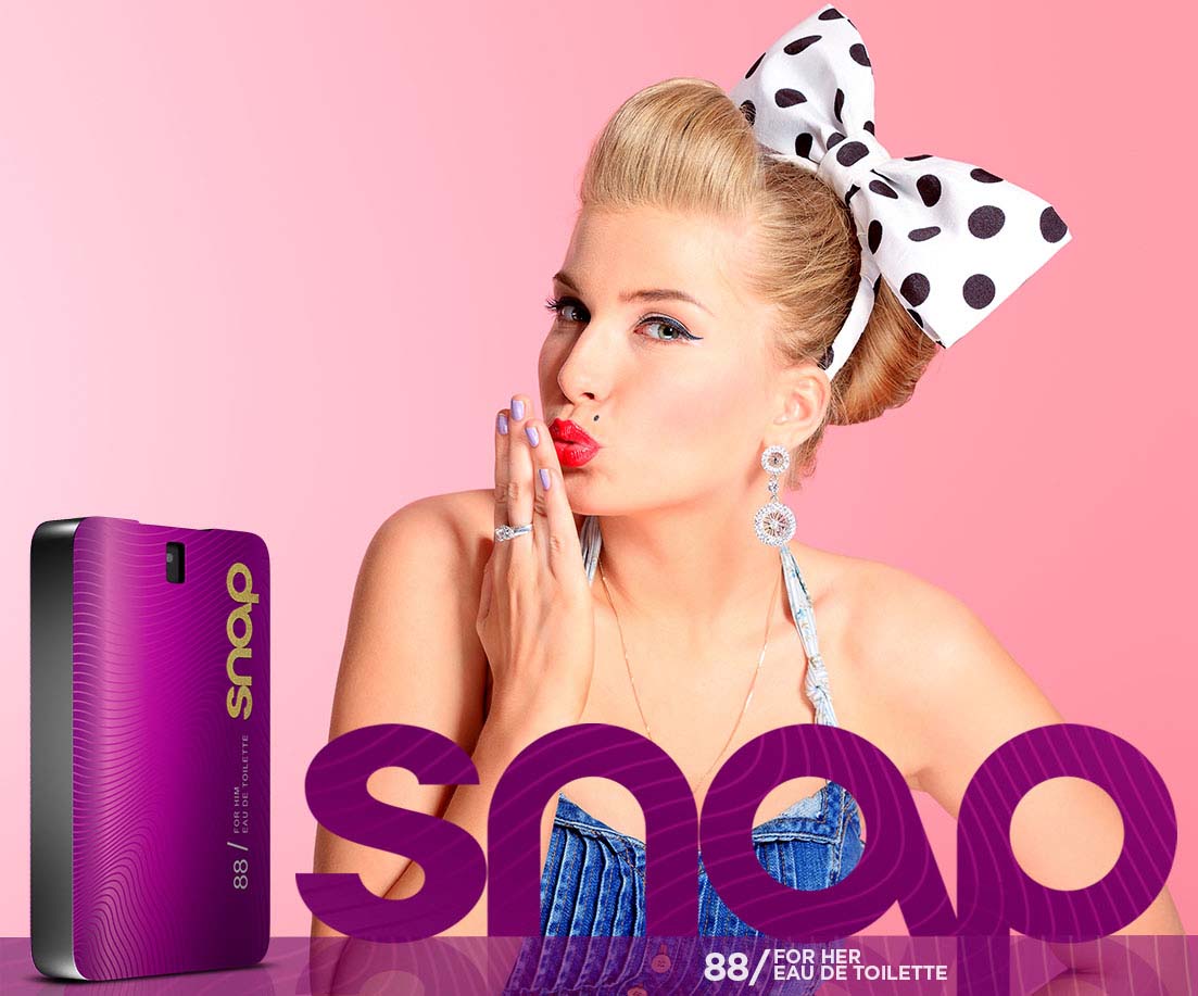 Snap 88 For Her podle Snap Perfume je Orientální Floral vůně pro ženy. Snap 88 For Her byl/a uveden/a v roce 2014. Vrchní tóny jsou Krvavý pomeranč, Citrón a Yuzu; střední tóny jsouAfrická fialka, Jasmín a Vonokvětka ; základní tóny jsou Fazole tonka, Pižmo, Santalové dřevo a Cedr.