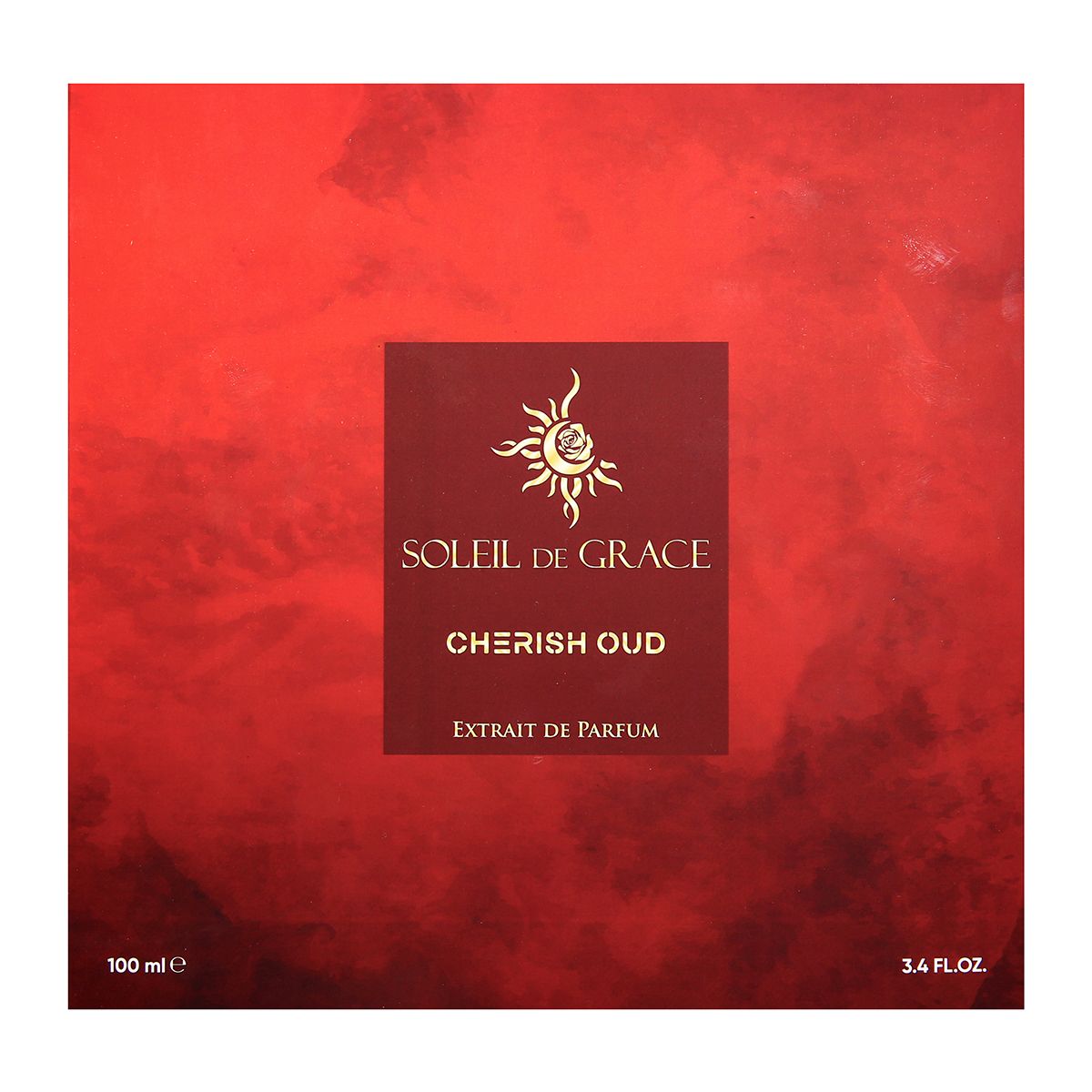Cherish Oud podle Soleil de Grâce je vůně pro ženy a muže. Toto je nová vůně. Cherish Oud byl/a uveden/a v roce 2024. "Nosem" za touto vůní je Hüseyin Erdoğmuş. Vrchní tóny jsou Třešeň, Maliny, Zázvor a Skořice; střední tóny jsouPačuli, Konvalinka, Fialka a Růže ; základní tóny jsou Agarové dřevo (oud), Jantar (ambra), Vanilka a Pižmo.