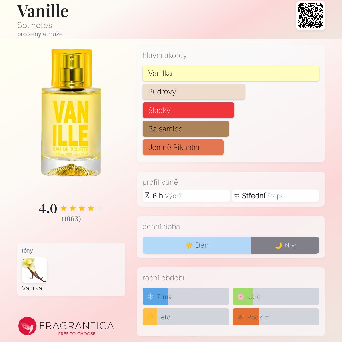 Vanille podle Solinotes je Aromatic vůně pro ženy a muže. Vanille byl/a uveden/a v roce 2010.