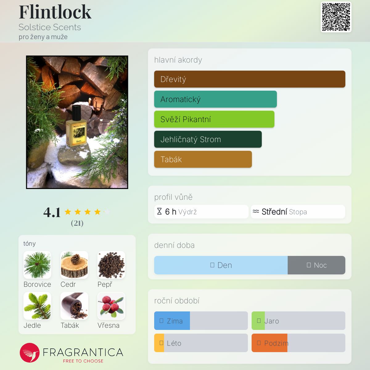 Flintlock podle Solstice Scents je Woody vůně pro ženy a muže. "Nosem" za touto vůní je Angela St.John.