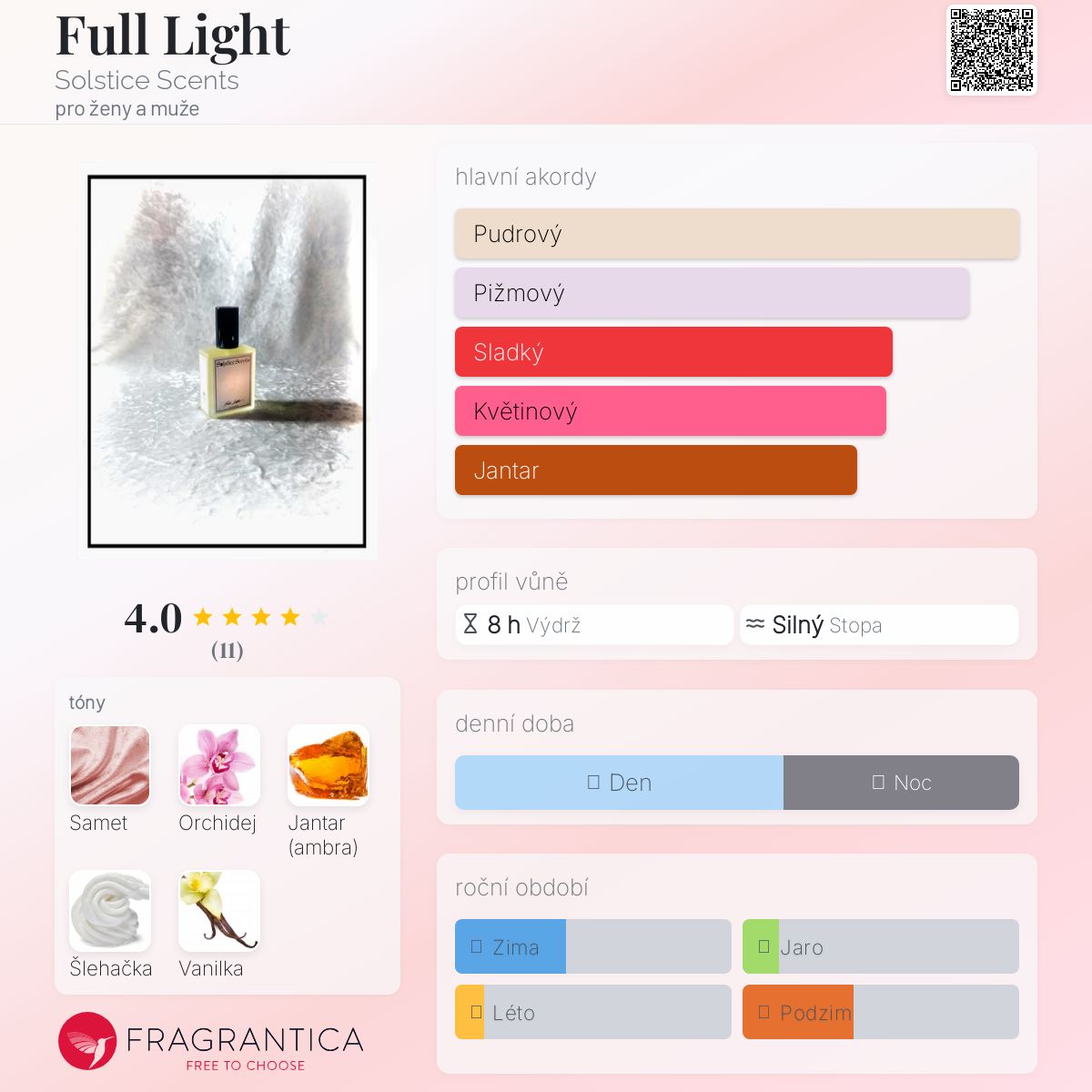 Full Light podle Solstice Scents je Orientální Vanilla vůně pro ženy a muže. Toto je nová vůně. Full Light byl/a uveden/a v roce 2025. "Nosem" za touto vůní je Angela St.John.