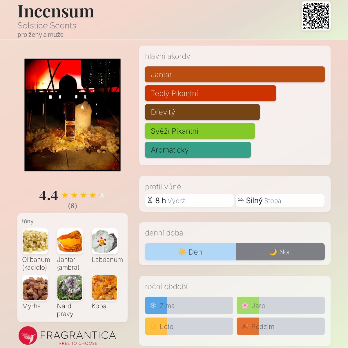 Incensum podle Solstice Scents je Orientální vůně pro ženy a muže. Incensum byl/a uveden/a v roce 2018. "Nosem" za touto vůní je Angela St.John.