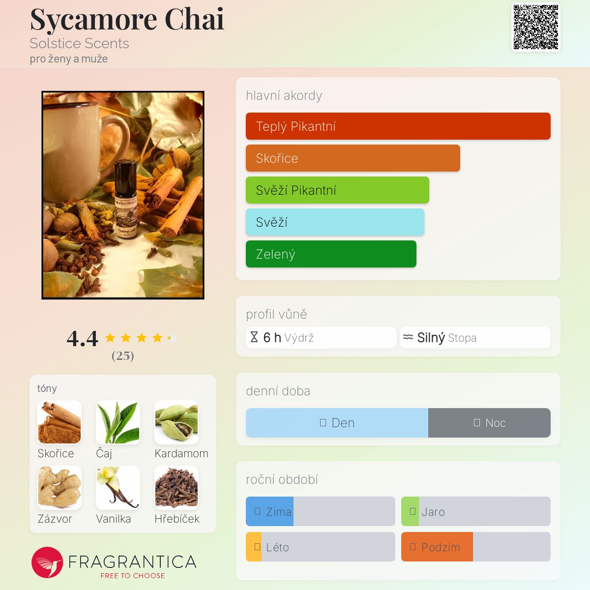 Sycamore Chai podle Solstice Scents je Orientální Spicy vůně pro ženy a muže. "Nosem" za touto vůní je Angela St.John.