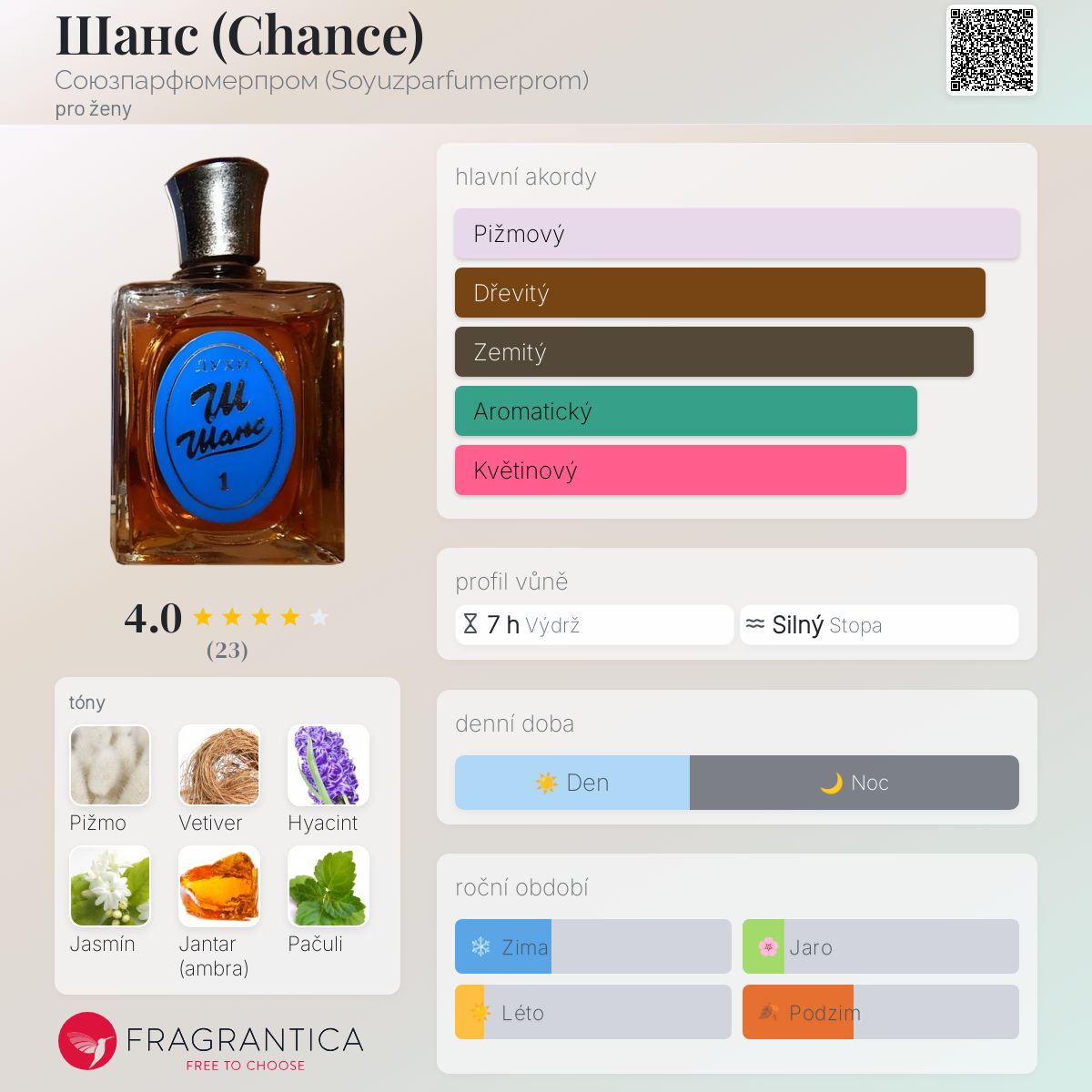Шанс (Chance) podle Союзпарфюмерпром (Soyuzparfumerprom) je vůně pro ženy. Шанс (Chance) byla spuštěna během 1970. "Nosem" za touto vůní je Alla Belfer.