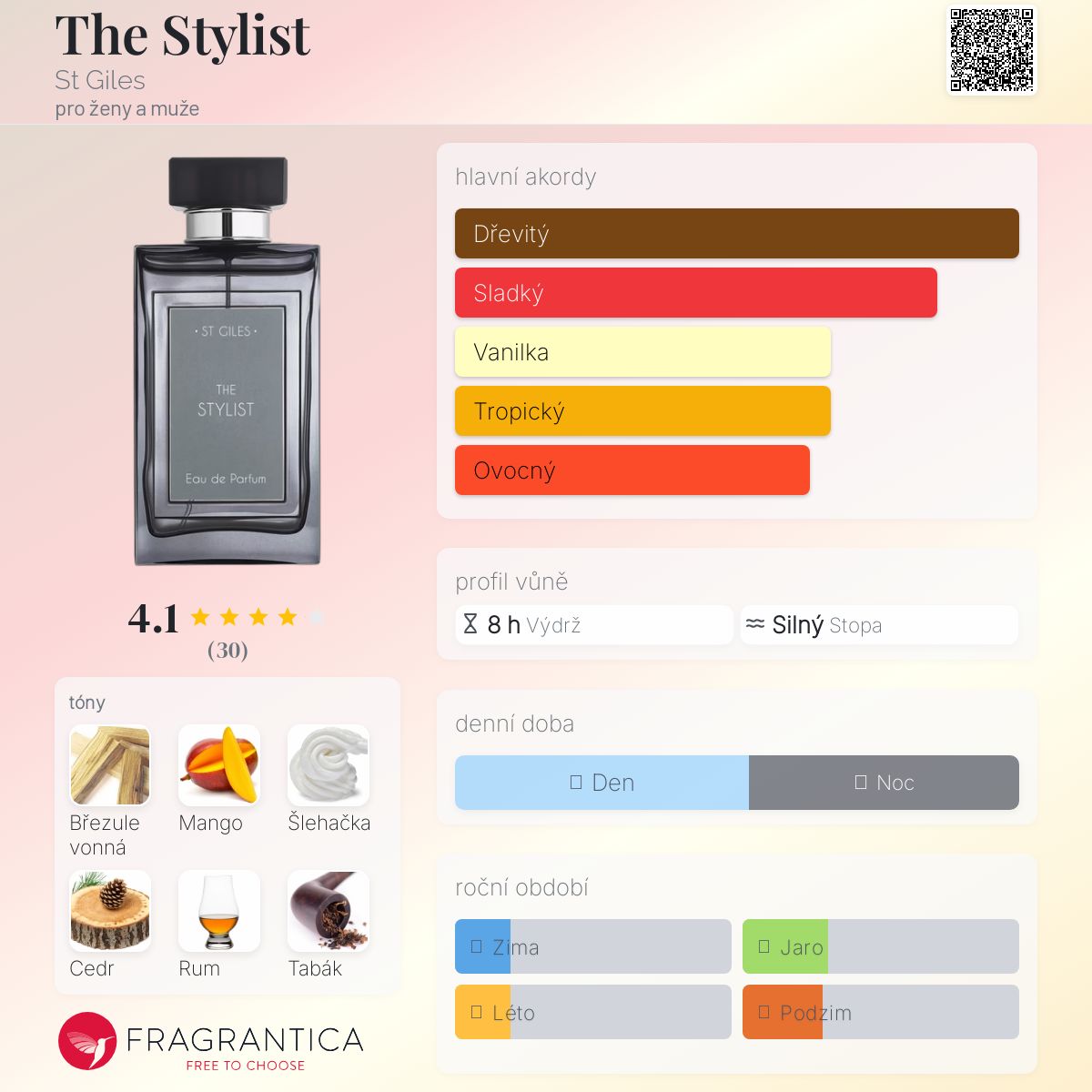 The Stylist podle St Giles je Woody Chypre vůně pro ženy a muže. The Stylist byl/a uveden/a v roce 2017. "Nosem" za touto vůní je Bertrand Duchaufour. Vrchní tóny jsou Mango, Rum, Hořký pomeranč a Aldehydy; střední tóny jsouBřezule vonná, Tamarind a Kadidlo ; základní tóny jsou Šlehačka, Virginský cedr, Marocký cedr, Tabák, Vanilka, Dubový mech a Pižmo.