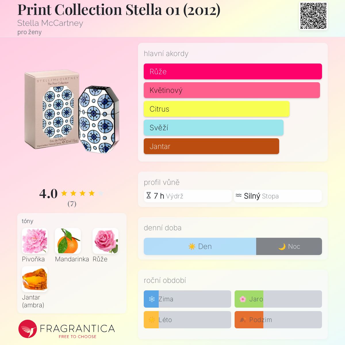 Print Collection Stella 01 (2012) podle Stella McCartney je Floral vůně pro ženy. Print Collection Stella 01 (2012) byl/a uveden/a v roce 2012. "Nosem" za touto vůní je Jacques Cavallier Belletrud.