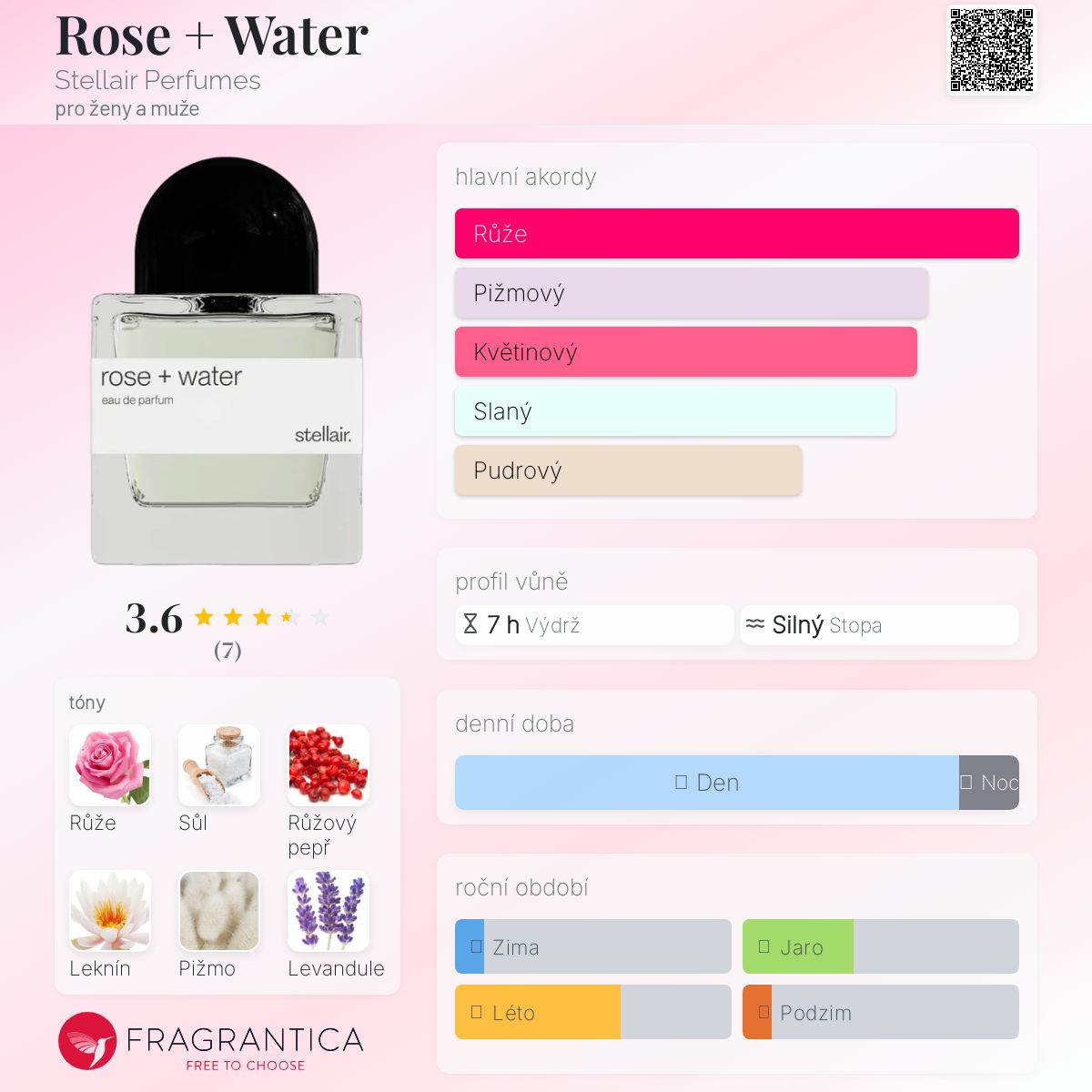 Rose + Water podle Stellair Perfumes je Floral vůně pro ženy a muže. Rose + Water byl/a uveden/a v roce 2023. Vrchní tóny jsou Růžový pepř, Levandule a Jantar (ambra); střední tóny jsouTurecká růže, Mořská sůl a Leknín ; základní tóny jsou Bílé pižmo a Kašmír.