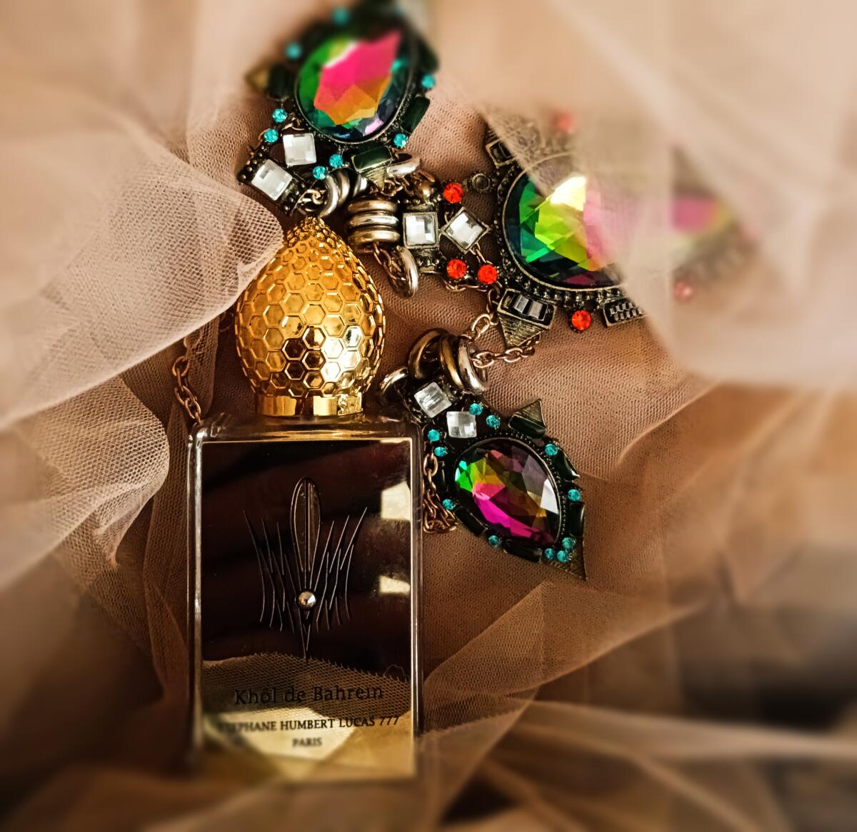 Khôl de Bahreïn podle Stéphane Humbert Lucas 777 je Orientální Woody vůně pro ženy a muže. Khôl de Bahreïn byl/a uveden/a v roce 2013. "Nosem" za touto vůní je Stéphane Humbert Lucas. Vrchní tóny jsou Pryskyřice, Sladké tóny a Fialka; střední tóny jsouKosatec, Ambra a Santalové dřevo ; základní tóny jsou Peruánský balzám a Pižmo.