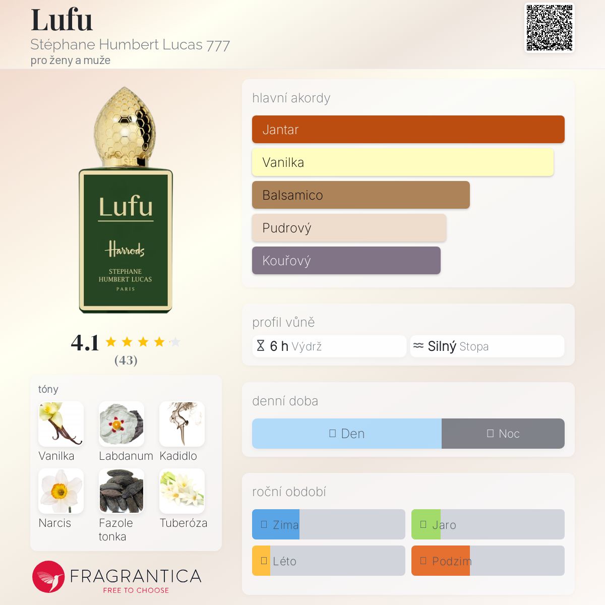 Lufu podle Stéphane Humbert Lucas 777 je Floral Woody Musk vůně pro ženy a muže. Lufu byl/a uveden/a v roce 2017. "Nosem" za touto vůní je Stéphane Humbert Lucas.