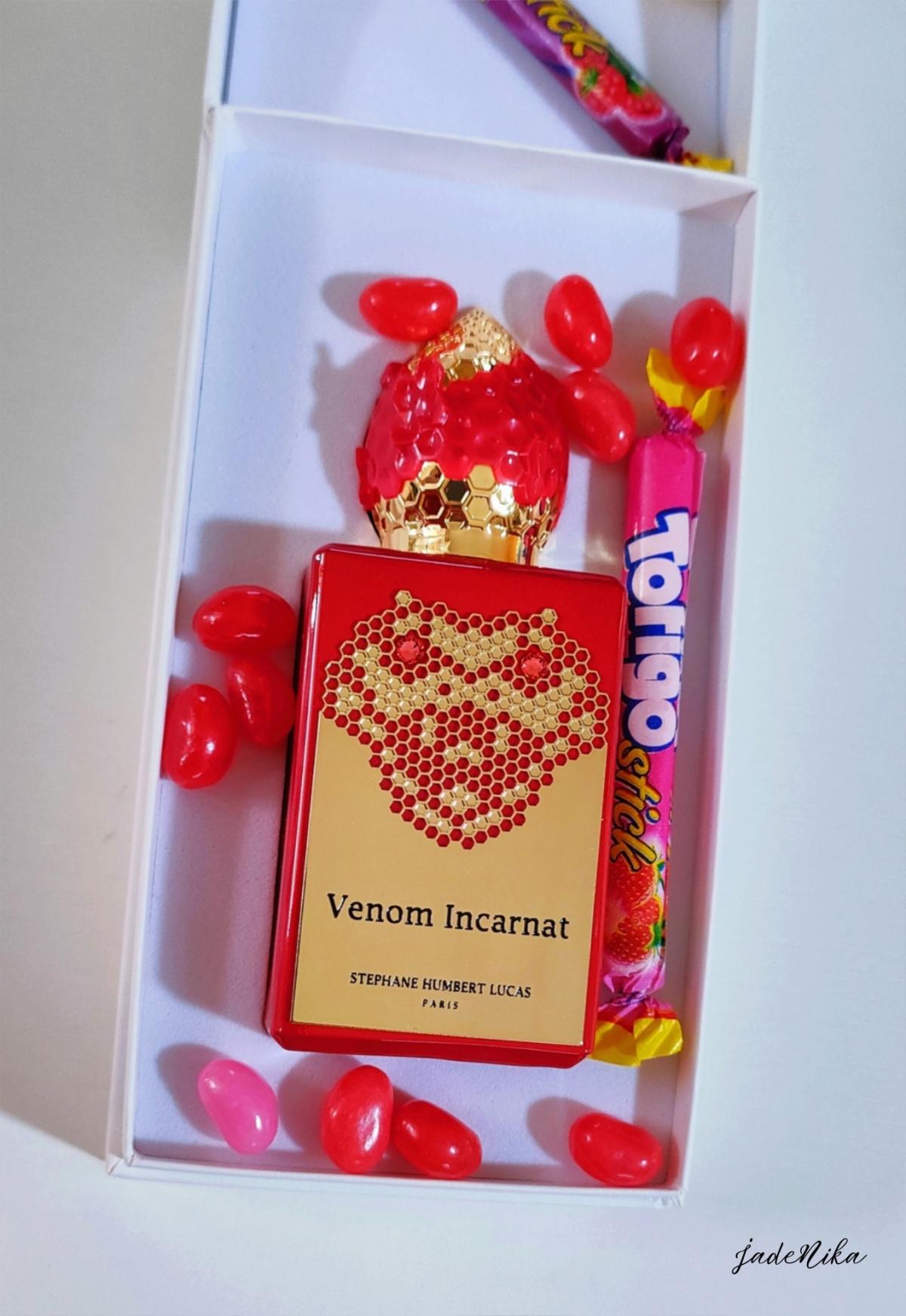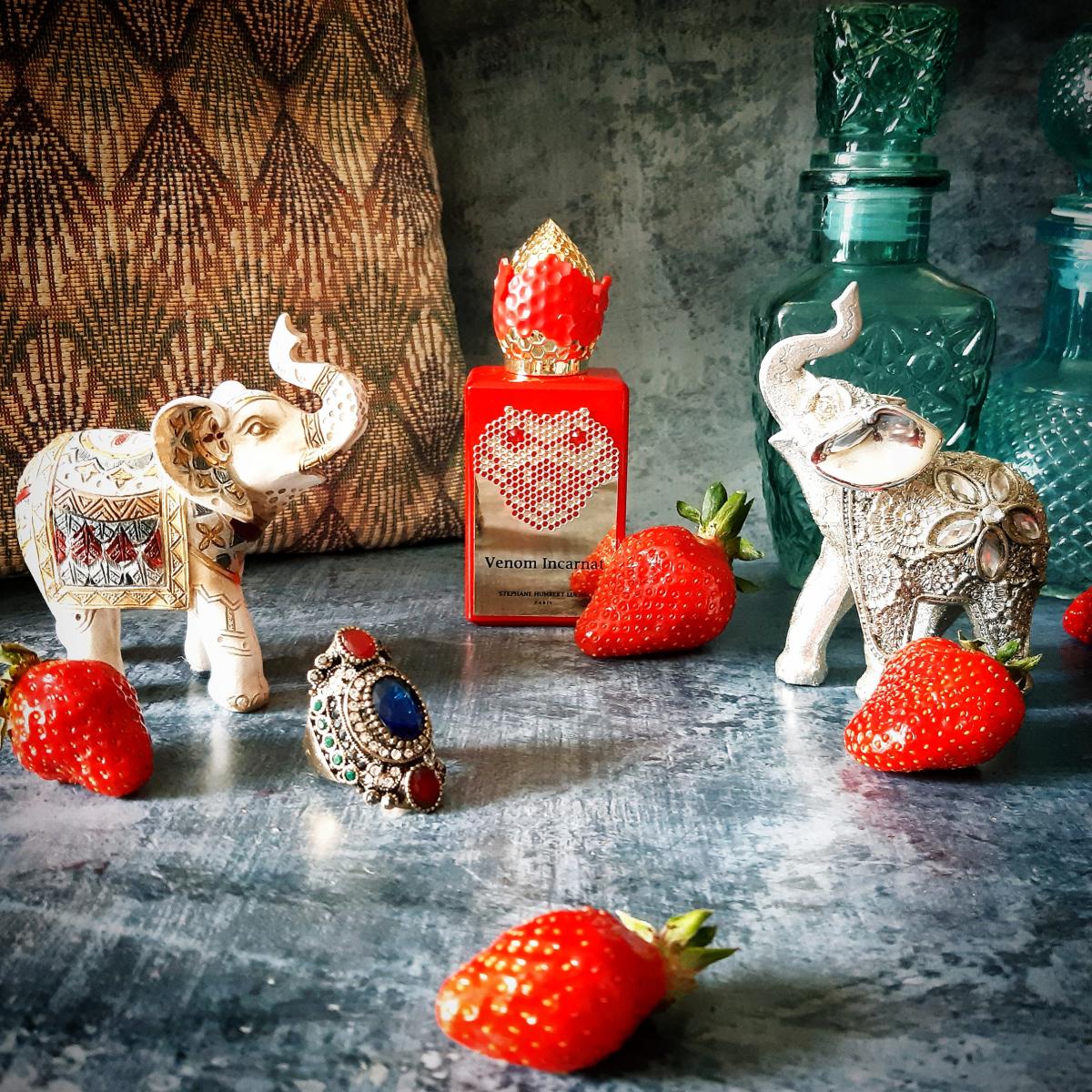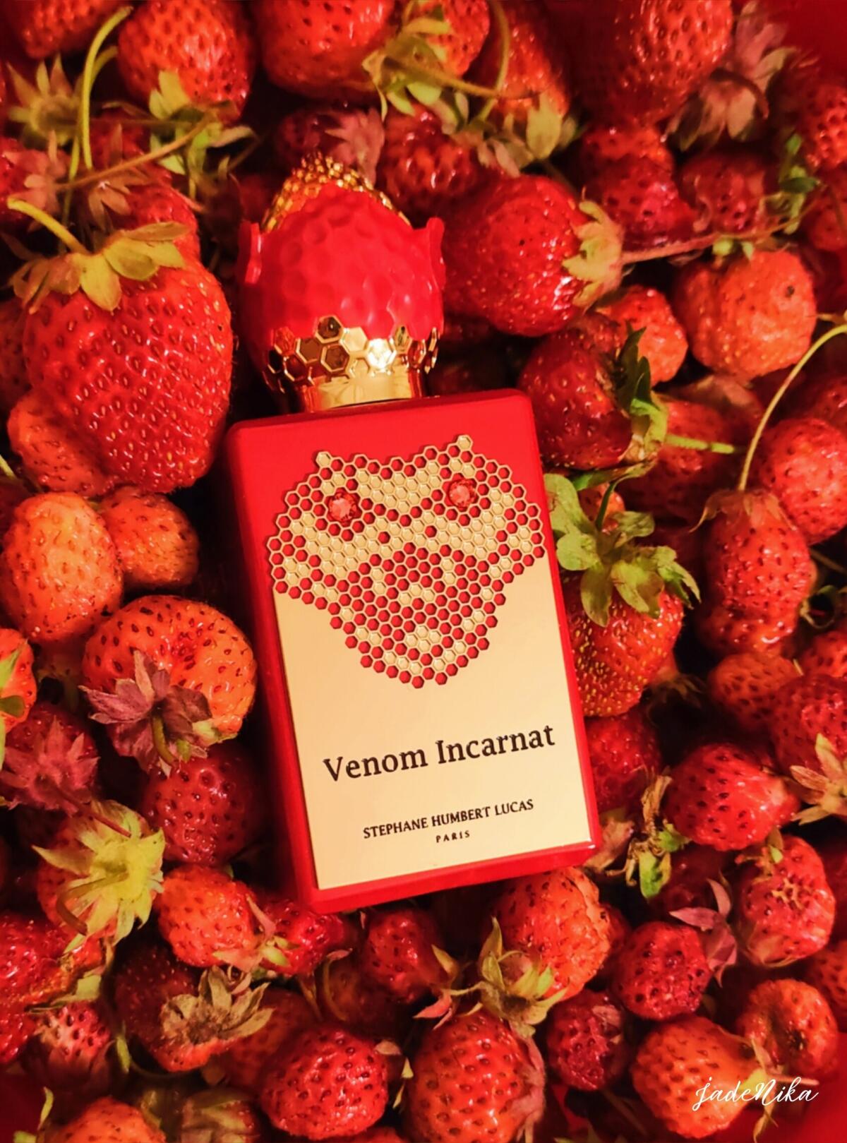 Venom Incarnat podle Stéphane Humbert Lucas 777 je Orientální Vanilla vůně pro ženy a muže. Venom Incarnat byl/a uveden/a v roce 2022. Venom Incarnat byl/a vytvořen/a Stéphane Humbert Lucas a Karine Chevallier. Vrchní tóny jsou Lesní jahoda, Jahoda, Karamel a Ostružina; střední tóny jsouMaliny, Virginský cedr a Skořice ; základní tóny jsou Ruská kůže, Karamel, Vanilka, Fazole tonka, Pačuli a Jedle balzámová.