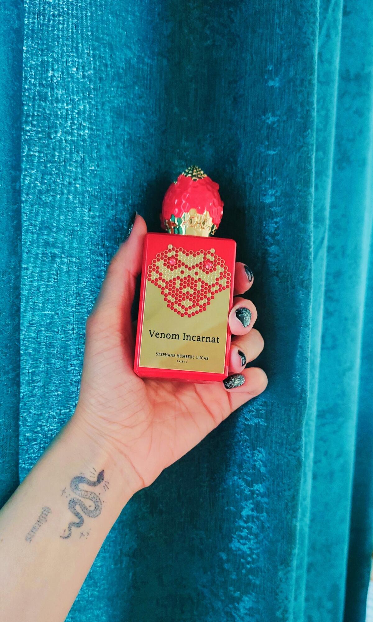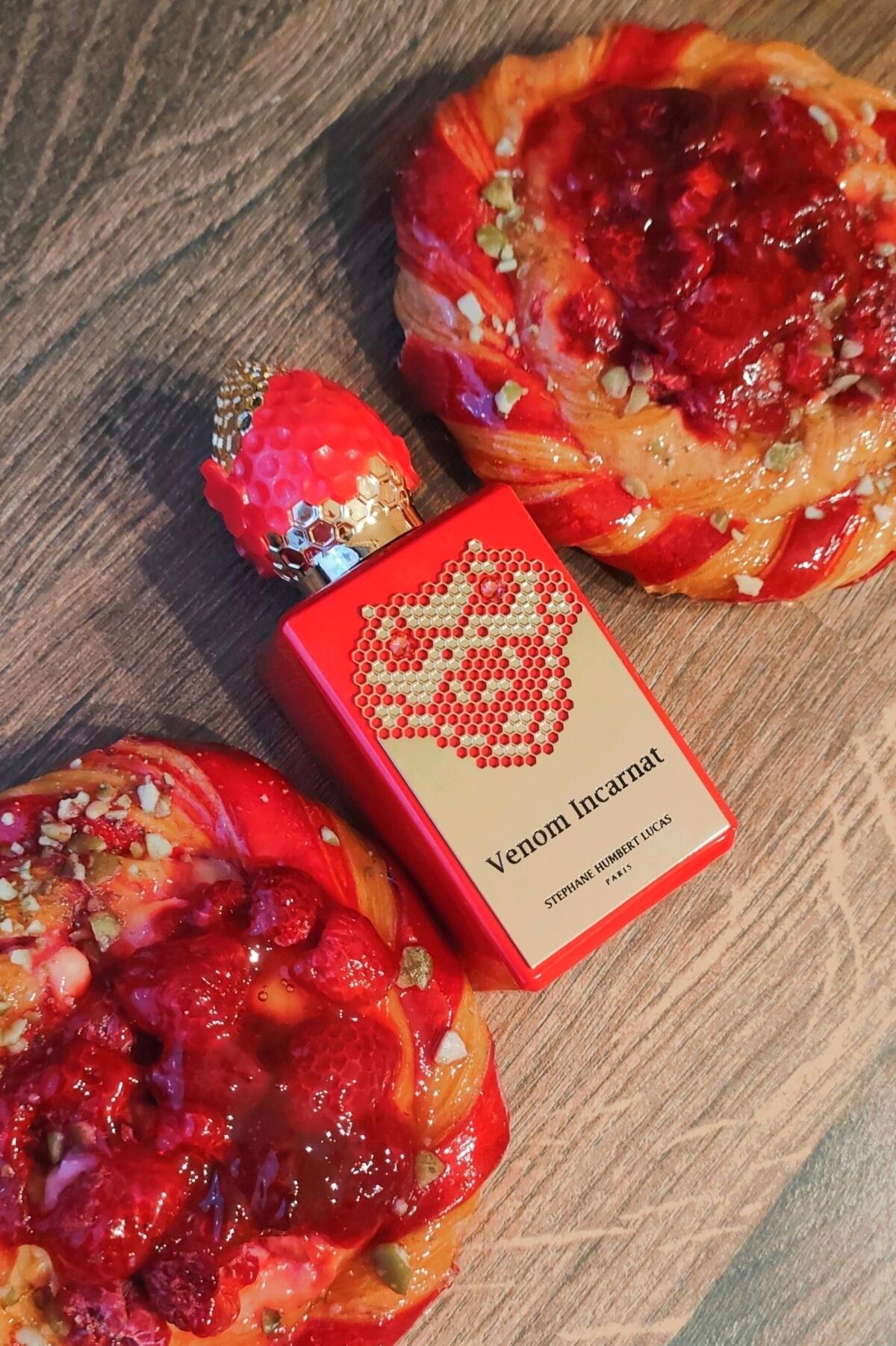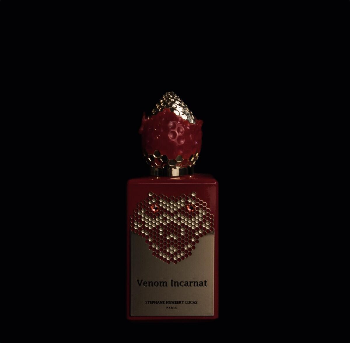 Venom Incarnat podle Stéphane Humbert Lucas 777 je Orientální Vanilla vůně pro ženy a muže. Venom Incarnat byl/a uveden/a v roce 2022. Venom Incarnat byl/a vytvořen/a Stéphane Humbert Lucas a Karine Chevallier. Vrchní tóny jsou Lesní jahoda, Jahoda, Karamel a Ostružina; střední tóny jsouMaliny, Virginský cedr a Skořice ; základní tóny jsou Ruská kůže, Karamel, Vanilka, Fazole tonka, Pačuli a Jedle balzámová.