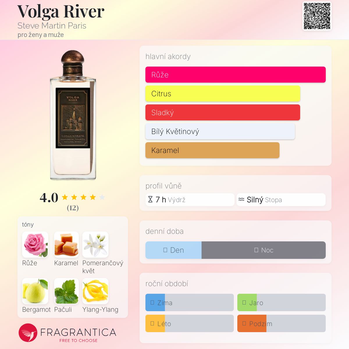 Volga River podle Steve Martin Paris je vůně pro ženy a muže. Volga River byl/a uveden/a v roce 2021. Vrchní tóny jsou Karamel, Bergamot a Červené ovoce; střední tóny jsouRůže, Pomerančový květ, Pačuli, Ylang-Ylang, Jasmín a Pryskyřice elimi ; základní tóny jsou Vanilka, Kůže, Pižmo a Kadidlo.
