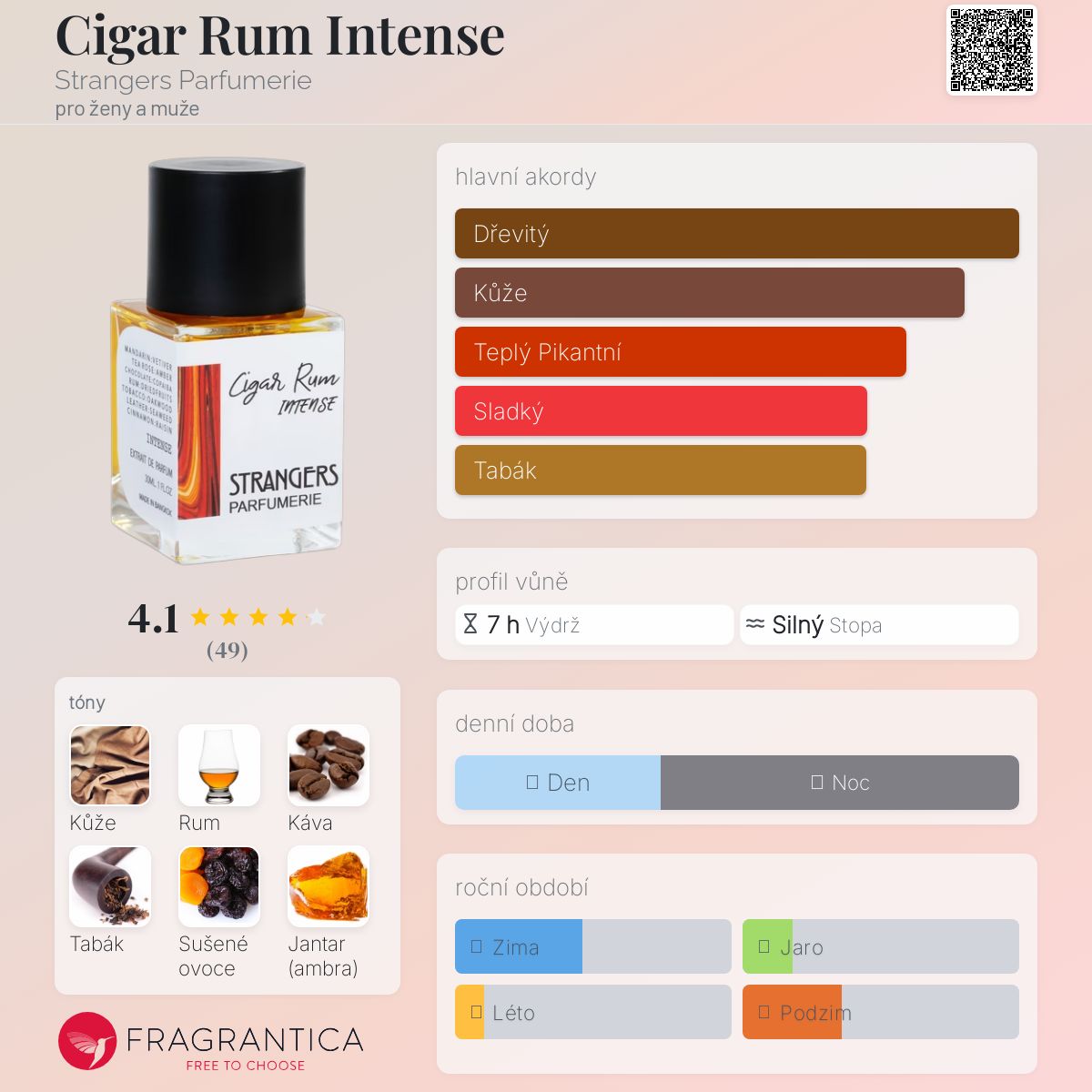 Cigar Rum Intense podle Strangers Parfumerie je Orientální Spicy vůně pro ženy a muže. Cigar Rum Intense byl/a uveden/a v roce 2019. "Nosem" za touto vůní je Prin Lomros.