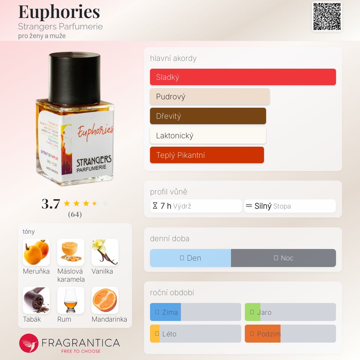 Euphories podle Strangers Parfumerie je vůně pro ženy a muže. Euphories byl/a uveden/a v roce 2021. "Nosem" za touto vůní je Prin Lomros.