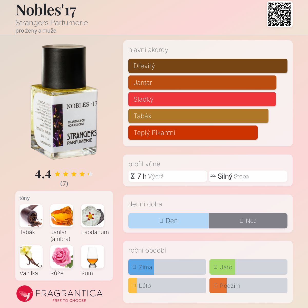 Nobles'17 podle Strangers Parfumerie je vůně pro ženy a muže. Nobles'17 byl/a uveden/a v roce 2021. "Nosem" za touto vůní je Prin Lomros.