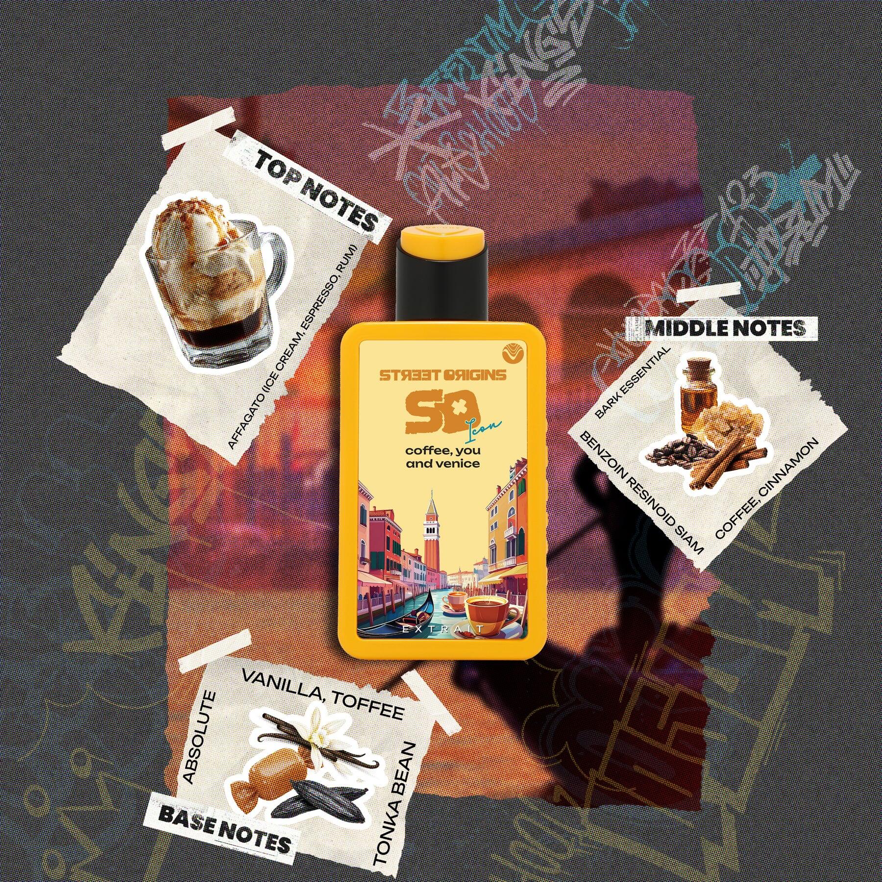 Coffee, You and Venice podle Street Origins je Orientální Vanilla vůně pro ženy a muže. Toto je nová vůně. Coffee, You and Venice byl/a uveden/a v roce 2025. Vrchní tón je Affogato ; střední tóny jsouKáva, Siamský (thajský) benzoin a Skořice ; základní tóny jsou Fazole tonka, Vanilka a Karamela.