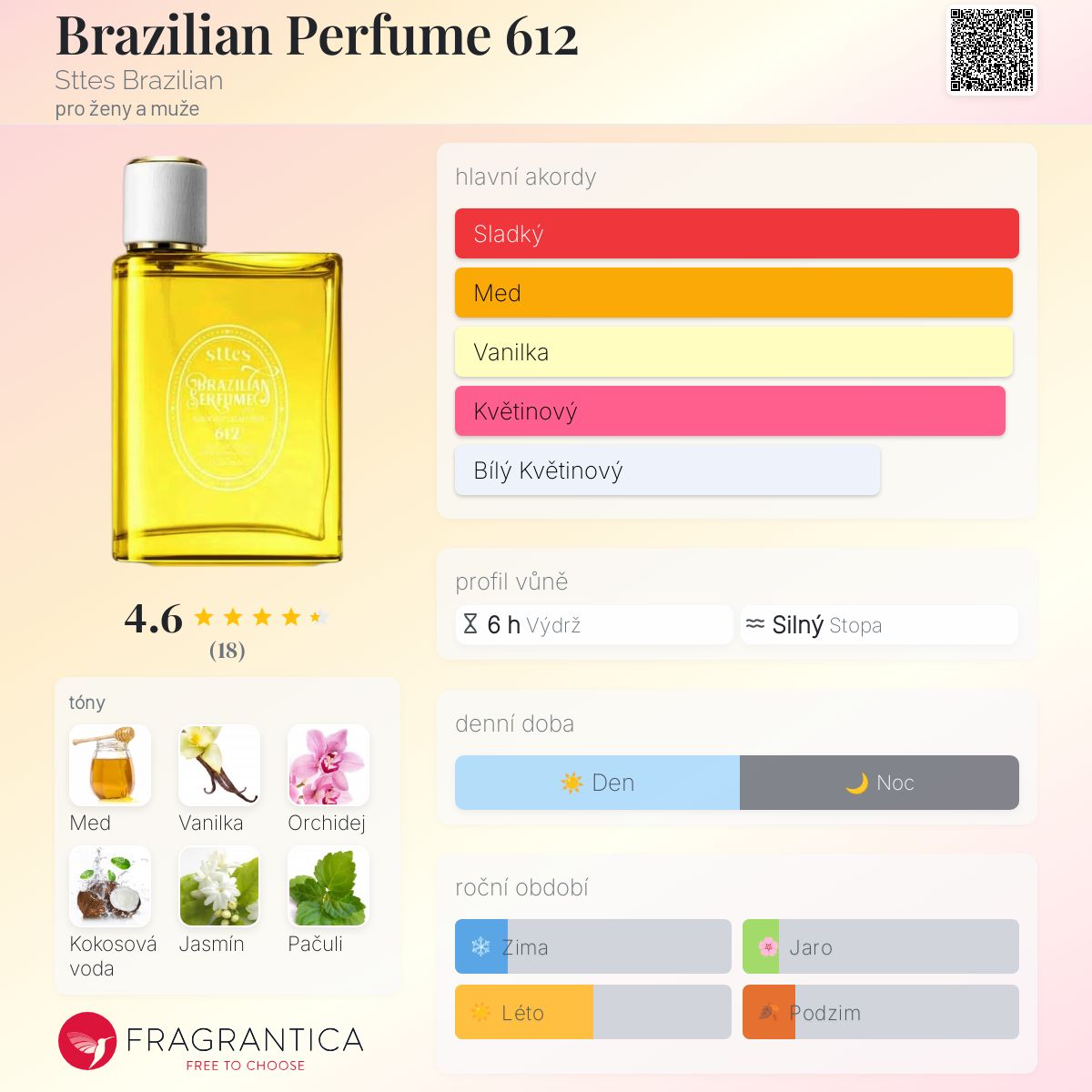 Brazilian Perfume 612 podle Sttes Brazilian je vůně pro ženy a muže. Toto je nová vůně. Brazilian Perfume 612 byl/a uveden/a v roce 2024. Vrchní tón je Kokosová voda ; střední tóny jsouMed, Orchidej a Jasmín ; základní tóny jsou Vanilka, Pačuli a Pižmo.