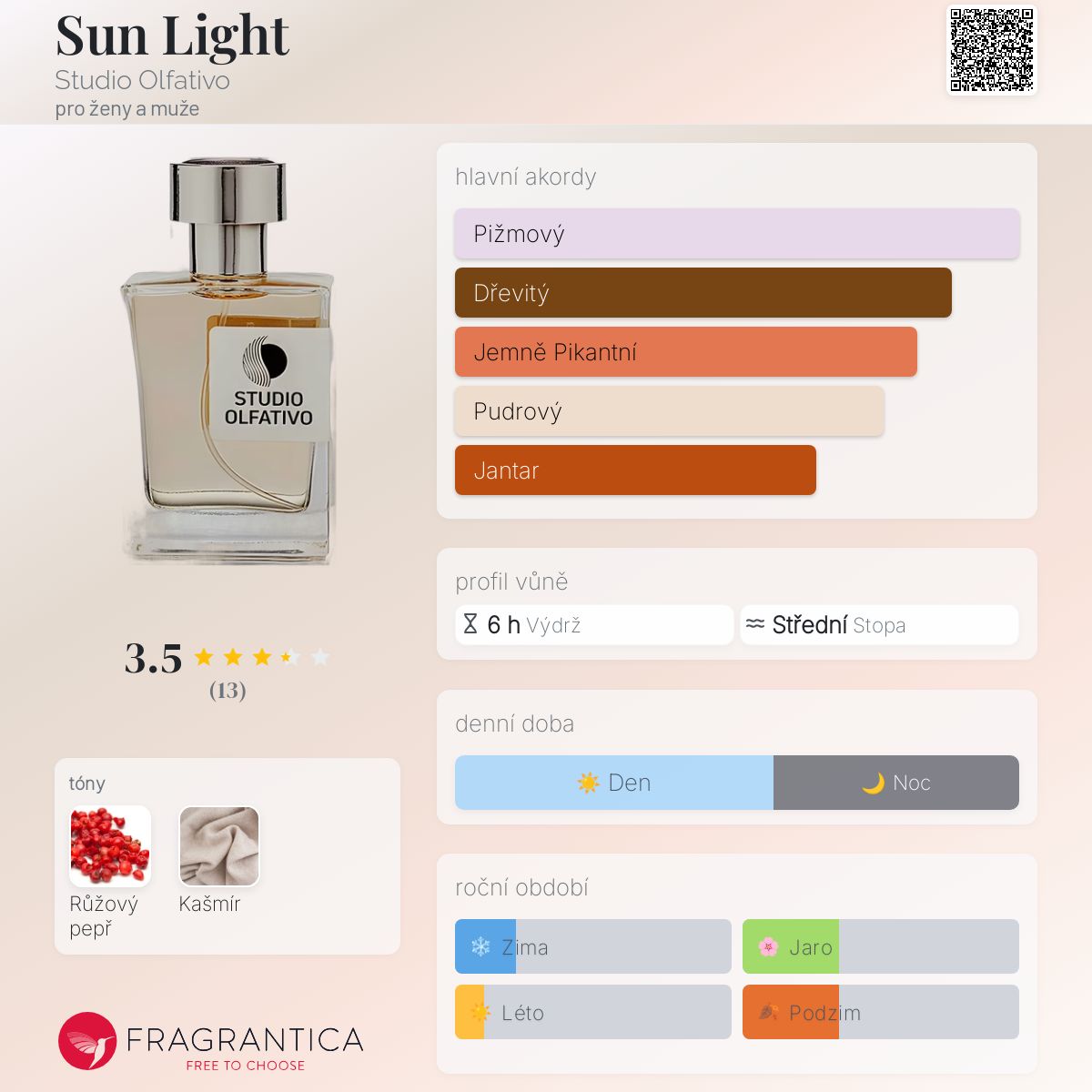Sun Light podle Studio Olfativo je Citrus Aromatic vůně pro ženy a muže. Sun Light byl/a uveden/a v roce 2021. "Nosem" za touto vůní je André Zanelatto.