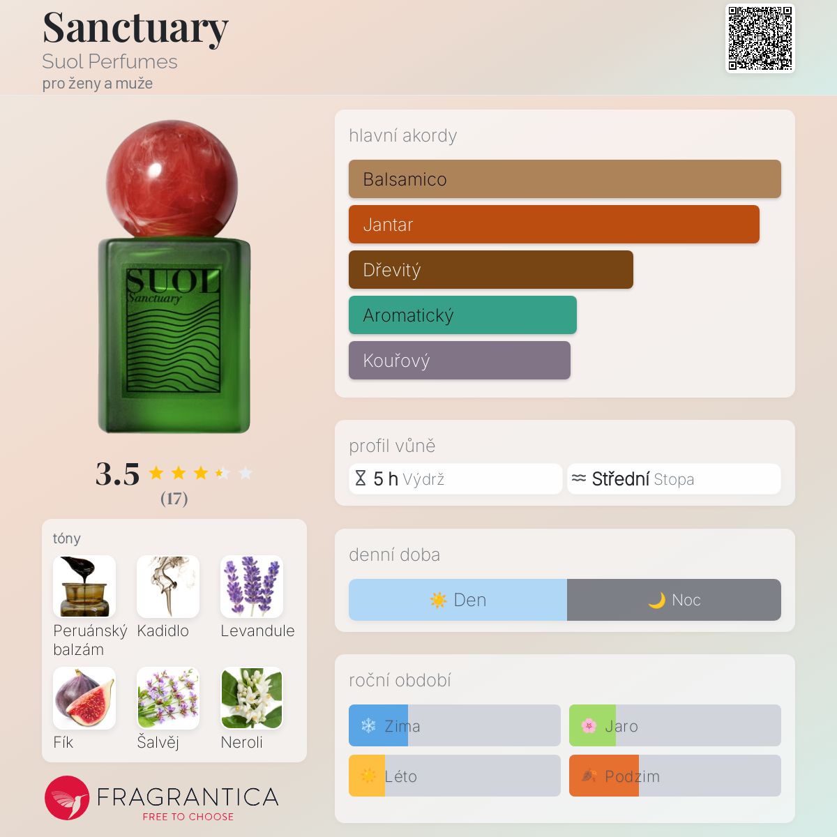 Sanctuary podle Suol Perfumes je Orientální Woody vůně pro ženy a muže. Toto je nová vůně. Sanctuary byl/a uveden/a v roce 2024. "Nosem" za touto vůní je Katerina Soloveva.