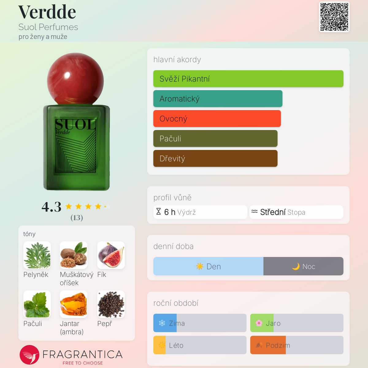 Verdde podle Suol Perfumes je Aromatic Spicy vůně pro ženy a muže. Toto je nová vůně. Verdde byl/a uveden/a v roce 2024. "Nosem" za touto vůní je Katerina Soloveva.