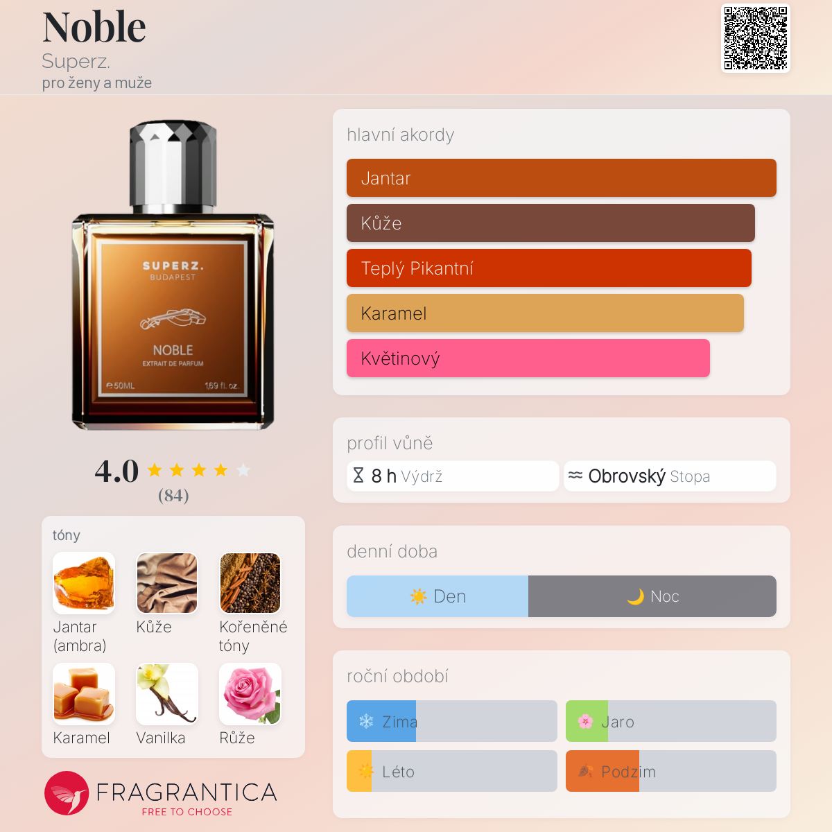 Noble podle Superz. je Leather vůně pro ženy a muže. Noble byl/a uveden/a v roce 2022. "Nosem" za touto vůní je Hüseyin Erdoğmuş.