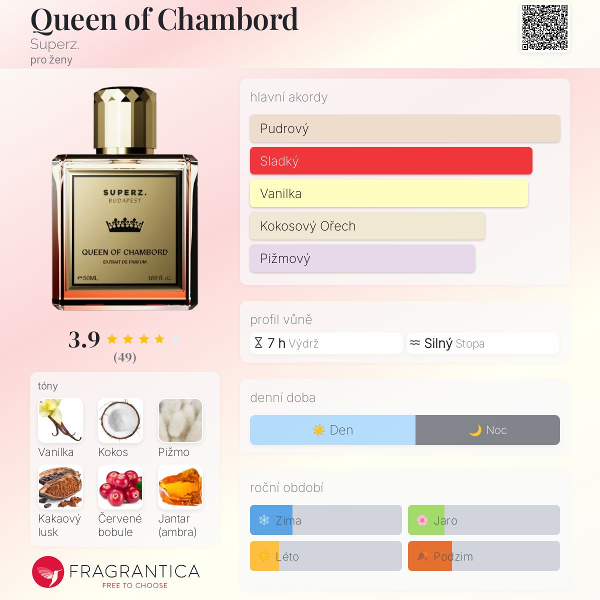 Queen of Chambord podle Superz. je Orientální Vanilla vůně pro ženy. Queen of Chambord byl/a uveden/a v roce 2022. "Nosem" za touto vůní je Hüseyin Erdoğmuş.