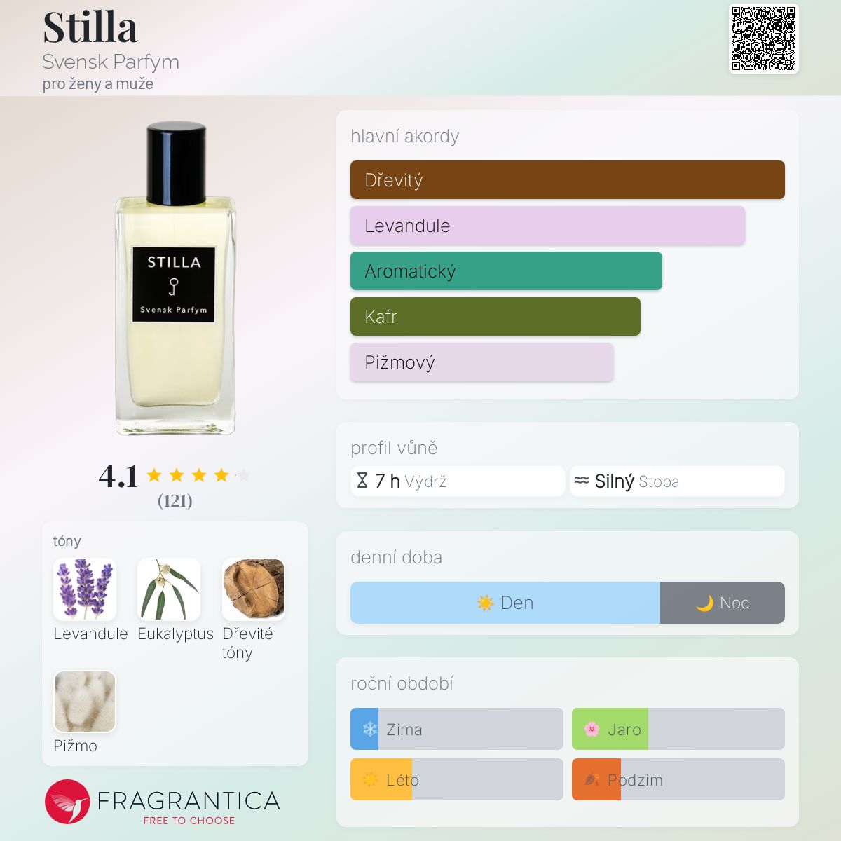 Stilla podle Svensk Parfym je Woody Aromatic vůně pro ženy a muže. Stilla byl/a uveden/a v roce 2017. "Nosem" za touto vůní je Henrik Lestréus.