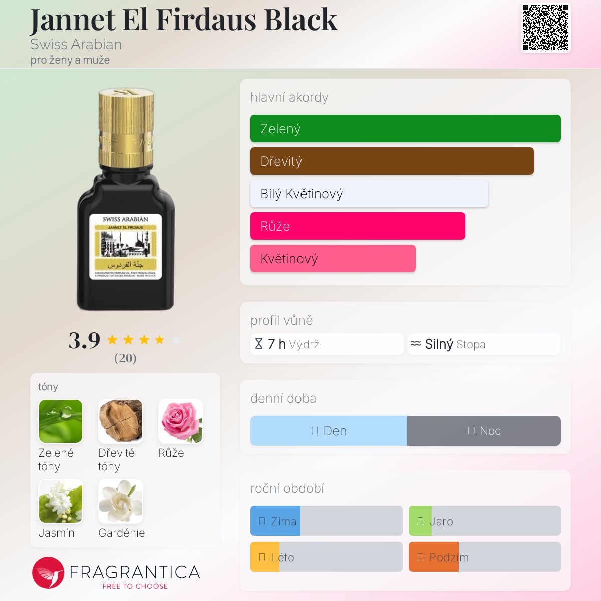 Jannet El Firdaus Black podle Swiss Arabian je vůně pro ženy a muže. Jannet El Firdaus Black byl/a uveden/a v roce 2018.