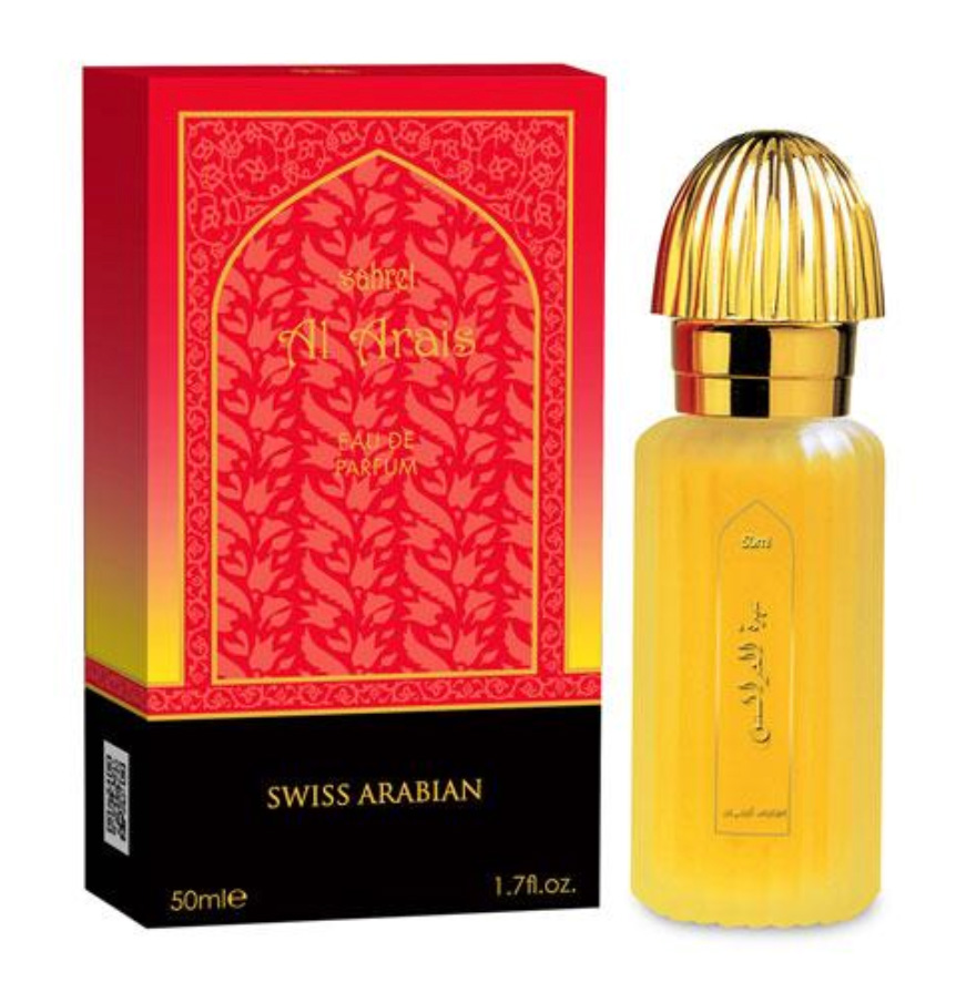 Sahret Al Arais podle Swiss Arabian je vůně pro ženy a muže. Vrchní tóny jsou Pomerančový květ, Jasmín a Růže; střední tóny jsouDřevité tóny, Kadidlo a Rýže ; základní tóny jsou Vanilka a Fazole tonka.