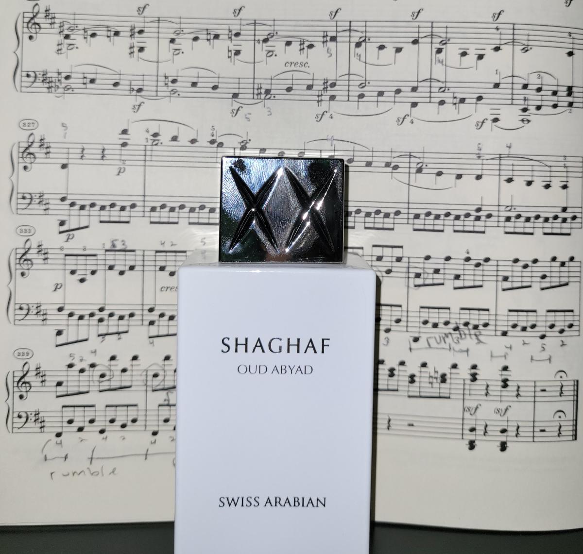 Shaghaf Oud Abyad podle Swiss Arabian je Woody Spicy vůně pro ženy a muže. Vrchní tóny jsou Oregano, Semínka jamajského pepře a Bergamot; střední tóny jsouMyrha, Opoponax, Olibanum, Jantar (ambra) a Citrusy ; základní tóny jsou Kouř, Agarové dřevo (oud), Kůže, Santalové dřevo a Pačuli.