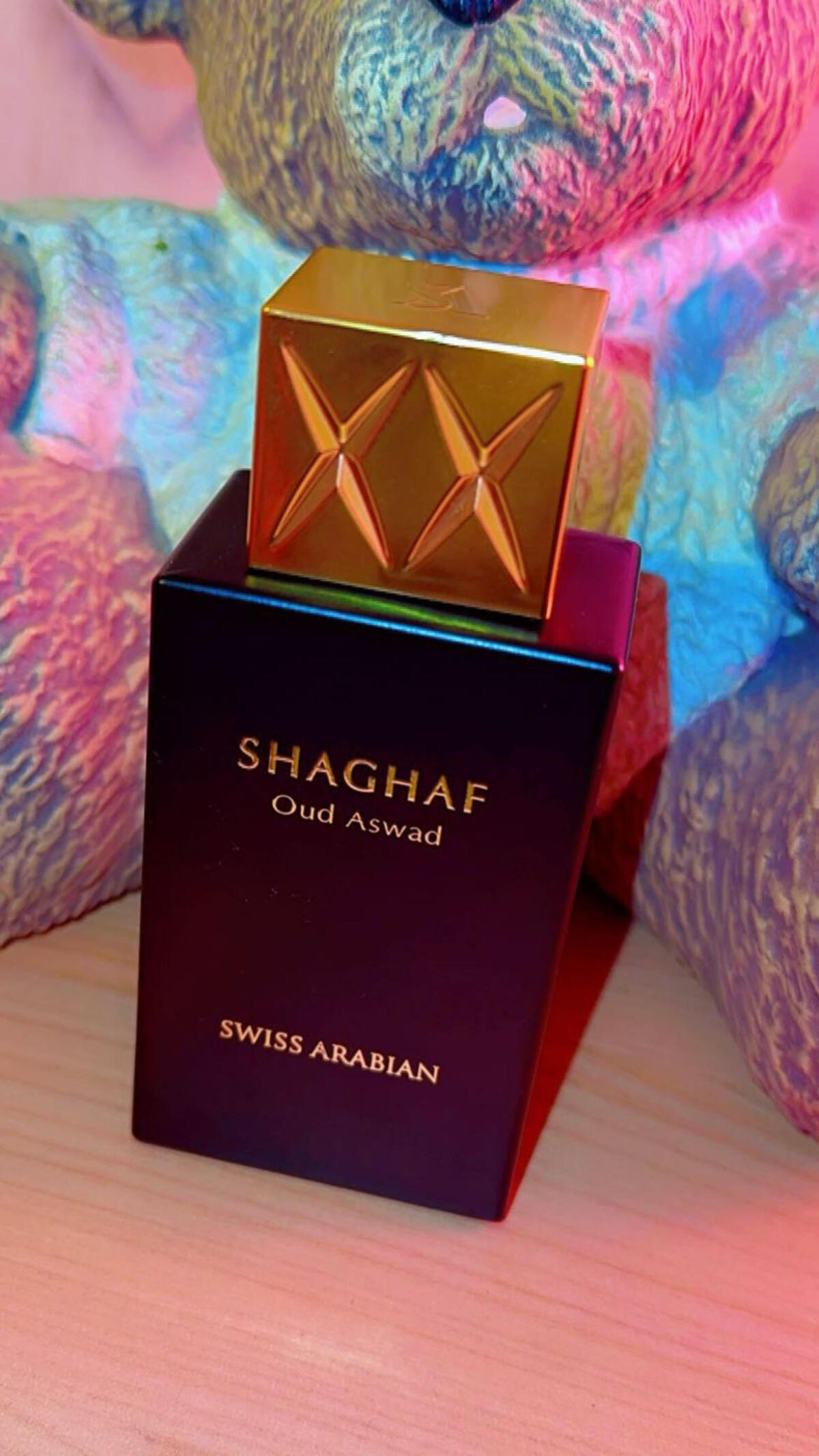 Shaghaf Oud Aswad podle Swiss Arabian je Orientální Woody vůně pro ženy a muže. Shaghaf Oud Aswad byl/a uveden/a v roce 2018. Vrchní tóny jsou Růže, Šafrán, Dřevité tóny a Tymián; střední tóny jsouRůže, Agarové dřevo (oud), Pačuli, Kmín, Koriandr a Jasmín ; základní tóny jsou Agarové dřevo (oud), Kůže, Jantar (ambra), Santalové dřevo, Vanilka a Pižmo.