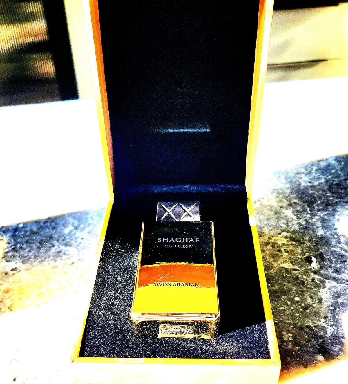 Shaghaf Oud Elixir podle Swiss Arabian je Orientální Woody vůně pro ženy a muže. Toto je nová vůně. Shaghaf Oud Elixir byl/a uveden/a v roce 2024. Vrchní tóny jsou Agarové dřevo (oud), Šafrán a Růžový pepř; střední tóny jsouAgarové dřevo (oud), Pralinka, Růže a Šalvěj ; základní tóny jsou Agarové dřevo (oud), Vanilka, Jantar (ambra) a Pižmo.