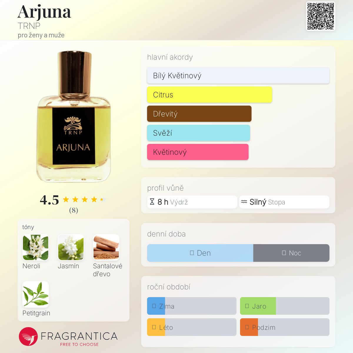 Arjuna podle TRNP je Floral Woody Musk vůně pro ženy a muže. Toto je nová vůně. Arjuna byl/a uveden/a v roce 2024.