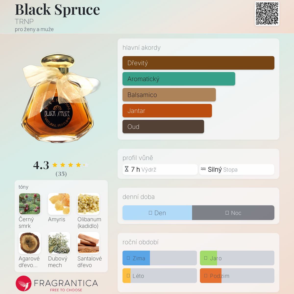Black Spruce podle TRNP je Orientální Woody vůně pro ženy a muže. Black Spruce byl/a uveden/a v roce 2015. "Nosem" za touto vůní je Teone Reinthal.