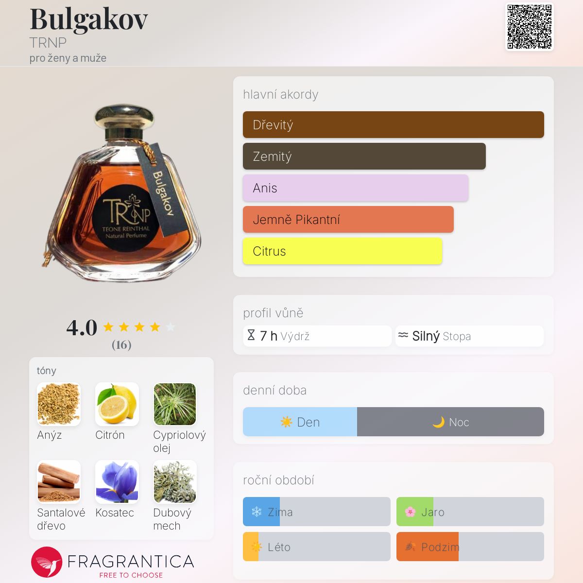 Bulgakov podle TRNP je vůně pro ženy a muže. Bulgakov byl/a uveden/a v roce 2018. "Nosem" za touto vůní je Teone Reinthal.