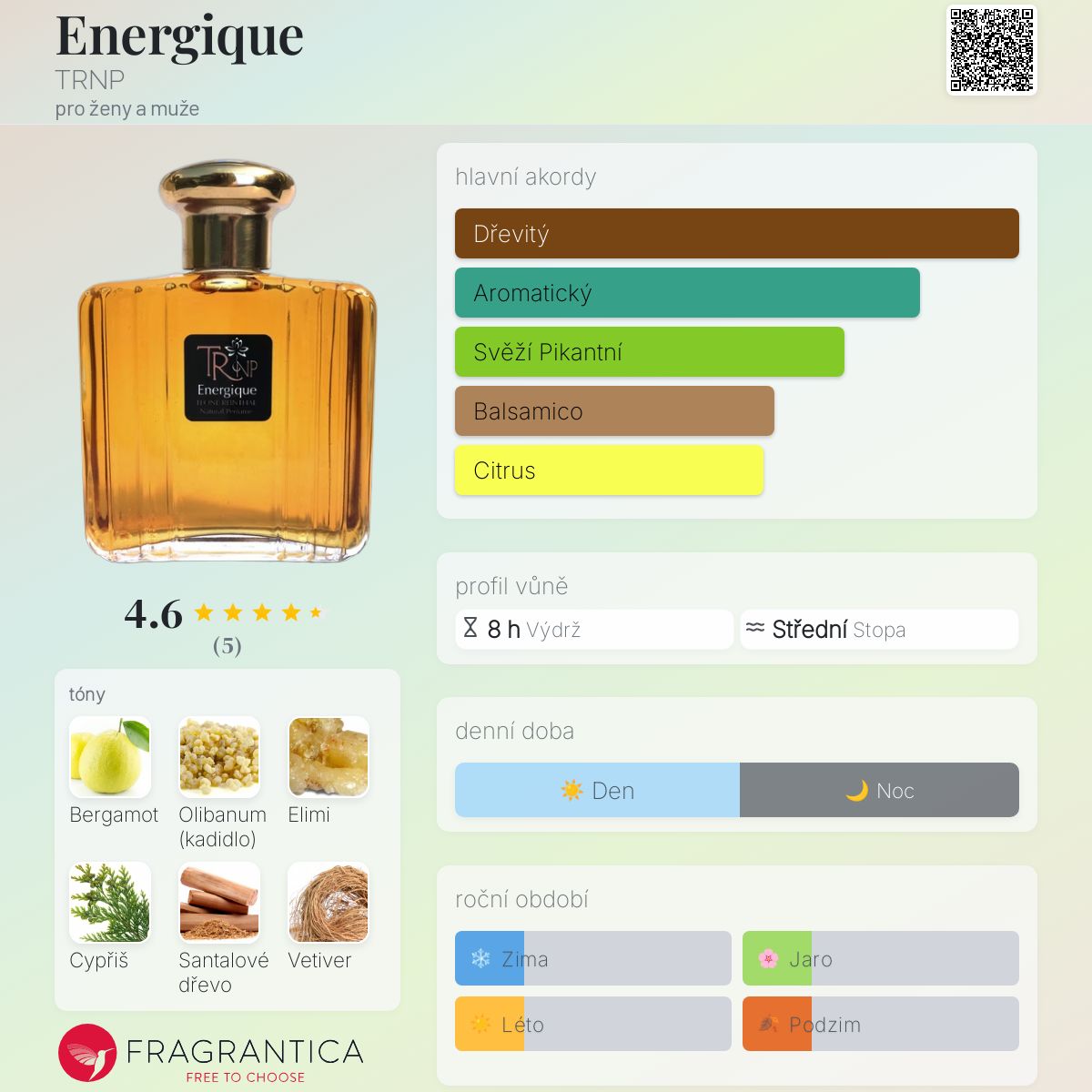 Energique podle TRNP je Chypre vůně pro ženy a muže. Energique byl/a uveden/a v roce 2018. "Nosem" za touto vůní je Teone Reinthal.