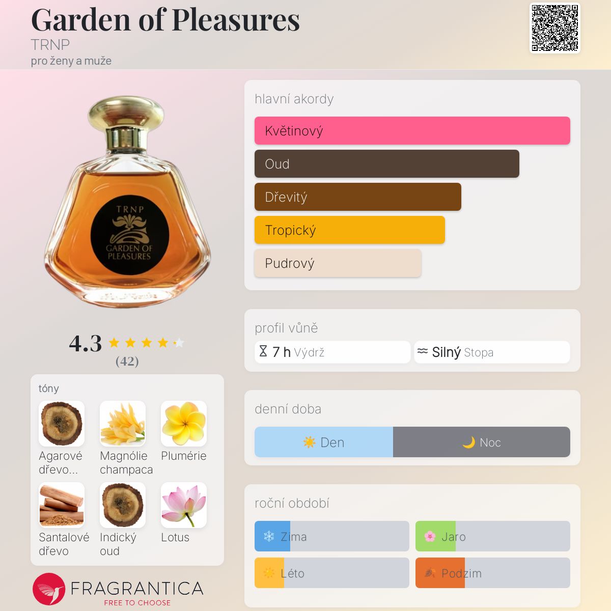 Garden of Pleasures podle TRNP je Orientální Floral vůně pro ženy a muže. Garden of Pleasures byl/a uveden/a v roce 2019. "Nosem" za touto vůní je Teone Reinthal.