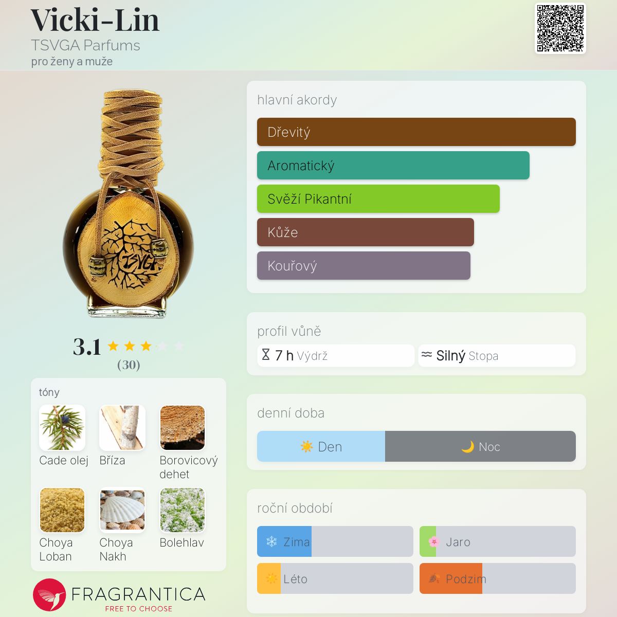 Vicki-Lin podle TSVGA Parfums je Woody Spicy vůně pro ženy a muže. Vicki-Lin byl/a uveden/a v roce 2021. "Nosem" za touto vůní je James Barry.