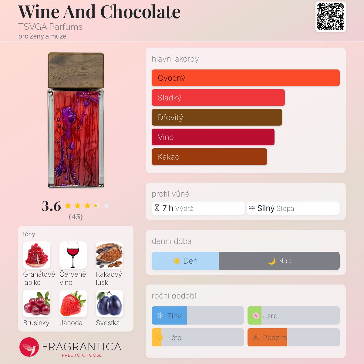 Wine And Chocolate podle TSVGA Parfums je Orientální Vanilla vůně pro ženy a muže. Wine And Chocolate byl/a uveden/a v roce 2021. "Nosem" za touto vůní je James Barry.