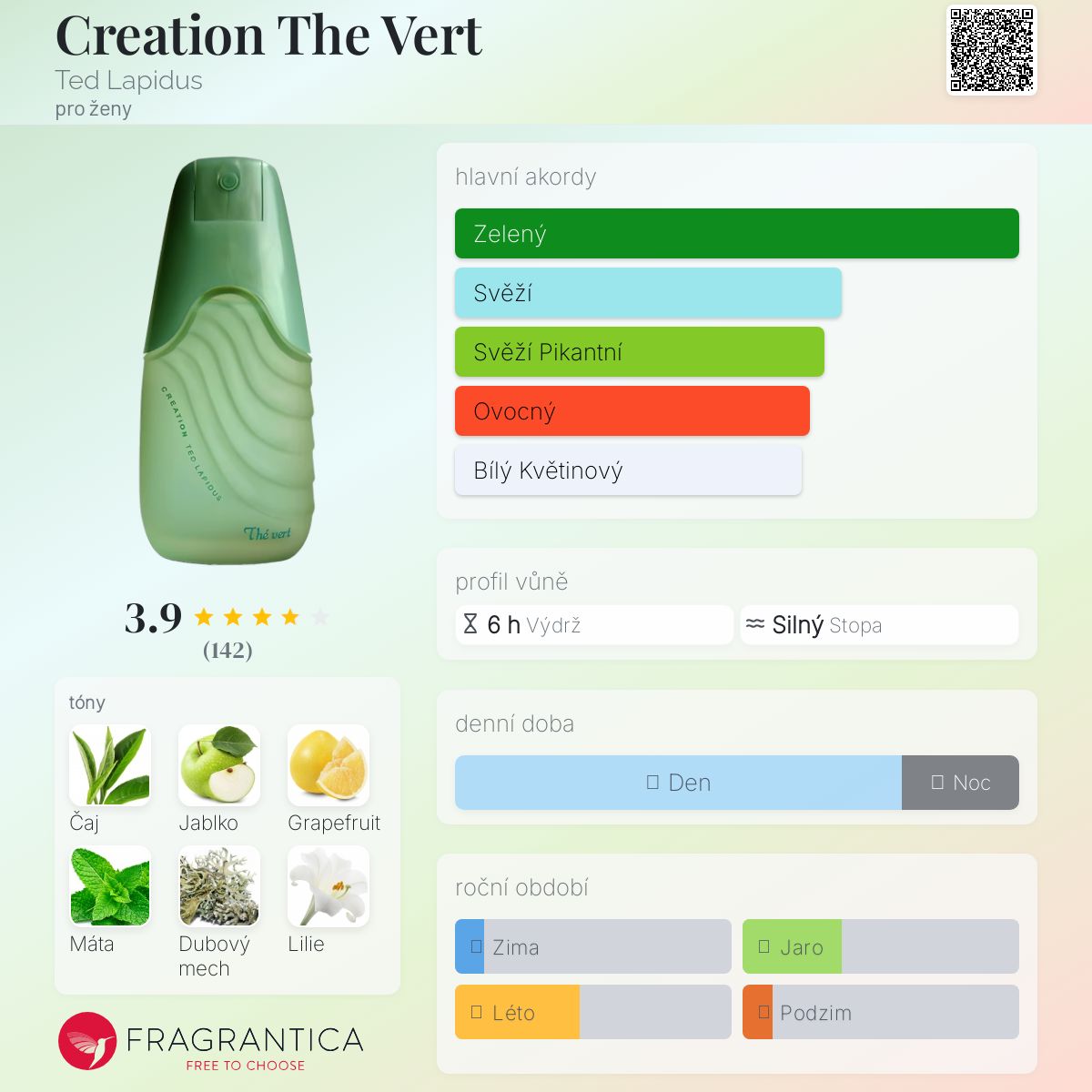Creation The Vert podle Ted Lapidus je Aromatic Green vůně pro ženy. Creation The Vert byl/a uveden/a v roce 2008.